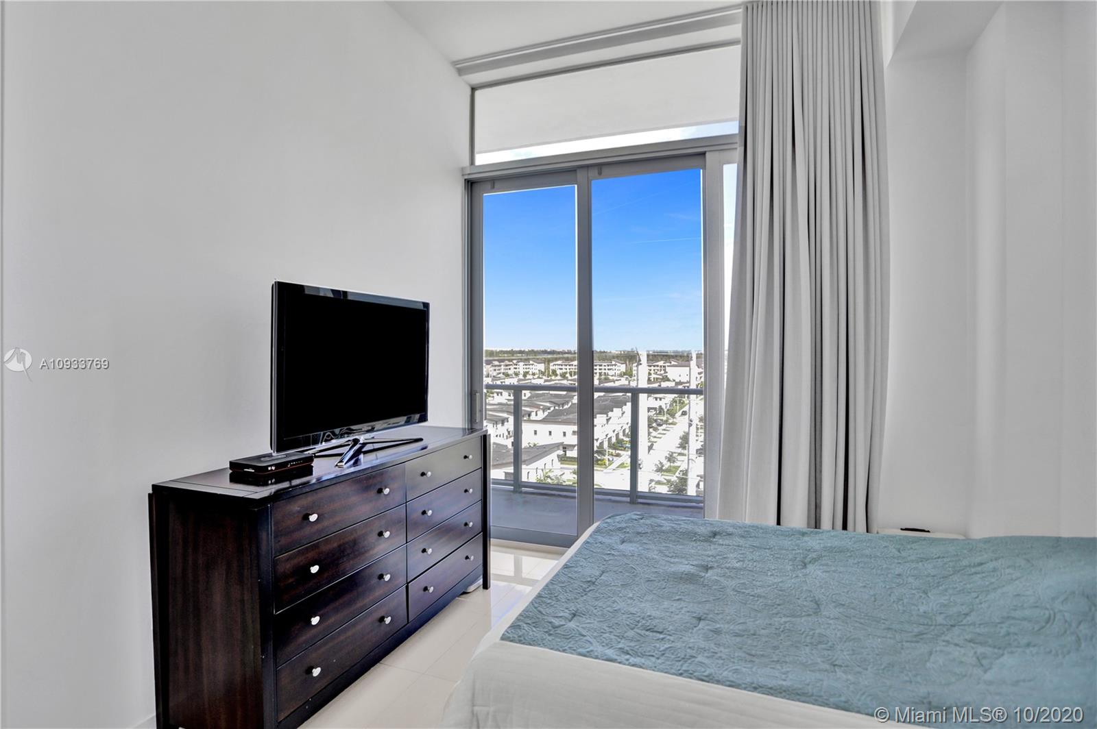 Fully Renovated PENTHOUSE For Sale in Midtown Doral. This 2 Bedrooms/2 Baths unit features High ceilings with porcelain tile floors. Modern designer kitchen with quartz countertops, new Bosch and Samsung stainless steel appliances, and European finishes. Bathrooms remodeled with quartz countertops and fresh tiles. NEW washer and dryer. Soundproof panels. No Expense Spared! Large balcony with private views of the Miami skyline. Two assigned parking spaces. Low HOA! TURN KEY ready.