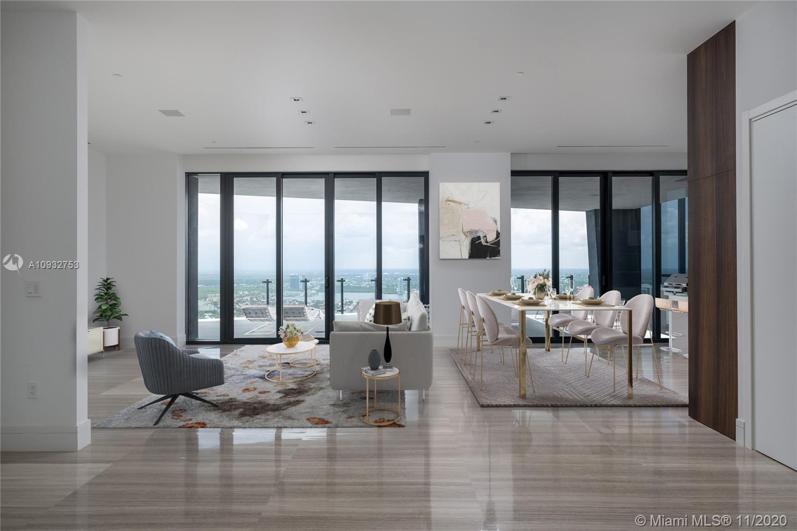 NEW PHOTOS VIRTUALLY FURNISHED..!!! Gorgeous unit on the 41th Floor with incredible panoramic and intercostal views. Unit Features: 12' Ceiling with floor to ceiling windows, a biometric safe in the master suite, intelligent camera system to enhance security at entry, marble flooring, midnight bar in the master suite, over 1100 Sqft in terrace, marble island and countertops, subzero / wolf appliances, Ipad controlled smart home.
