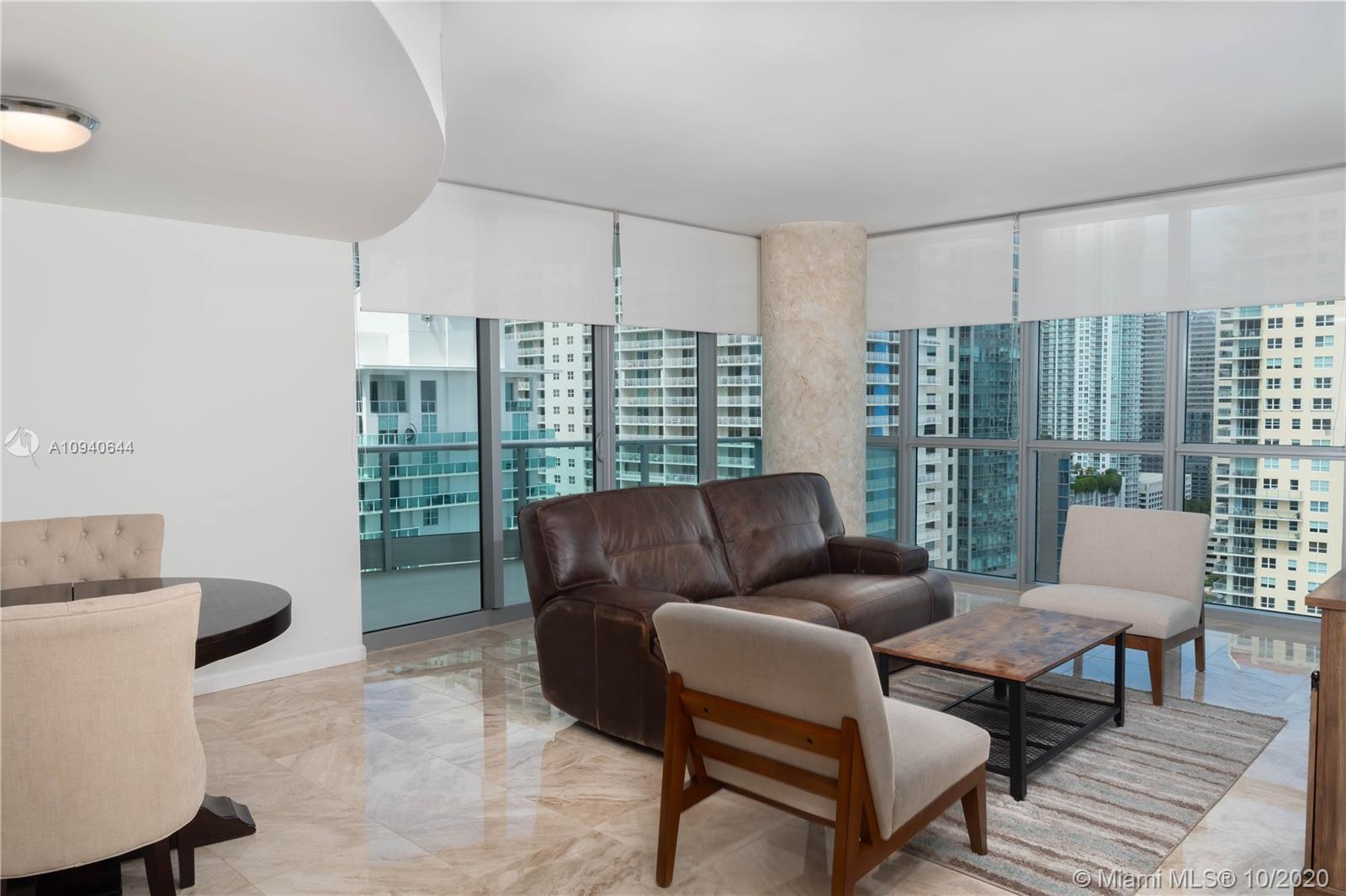 Beautiful corner unit in The Jade at Brickell Bay featuring stunning ocean, bay and city views. 2 bedrooms and 2 full bathrooms in an open split floor plan. European kitchen with stainless steel appliances and granite counter-tops. Spacious master suite with walk-in California closet, master bath with dual sink, jacuzzi tub, frameless glass shower and separate toilet and bidet. Marble flooring throughout. Exclusive owners elevator opening on unit foyer. 2 open balconies, 2 garage parking spaces and 1 separate storage closet. High-end building with all contemporary amenities offering a tranquil, luxury lifestyle at the edge of vibrant Brickell. Only steps away from shopping, restaurants, bars and entertainment.
