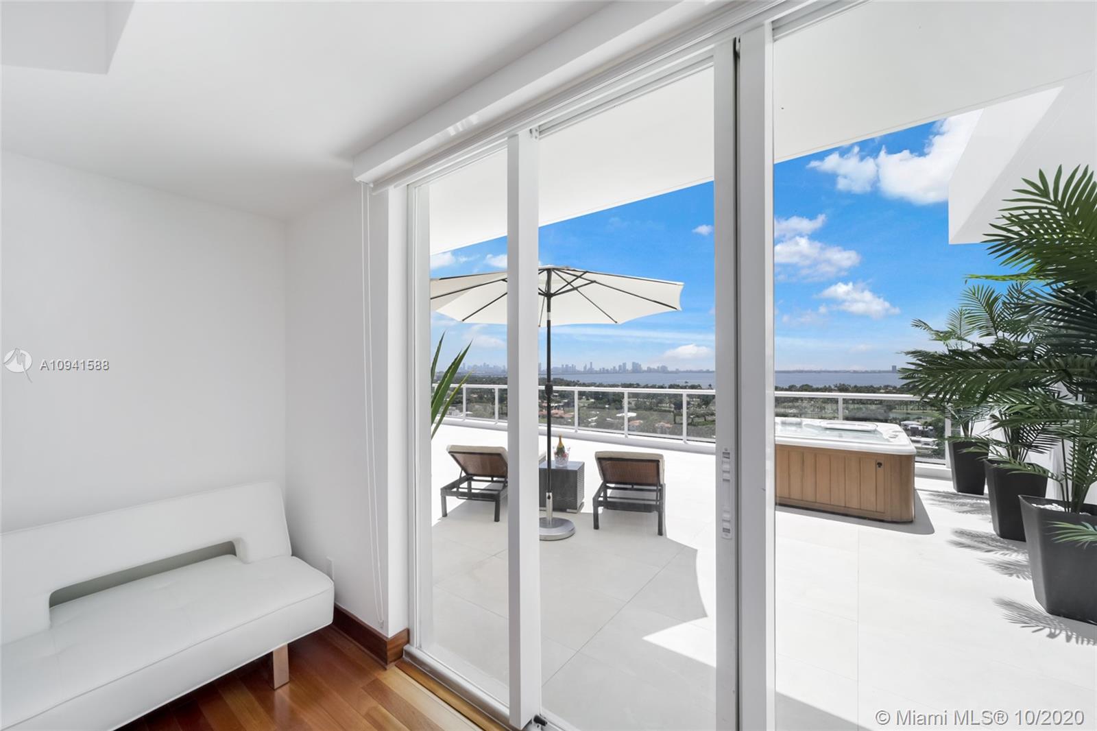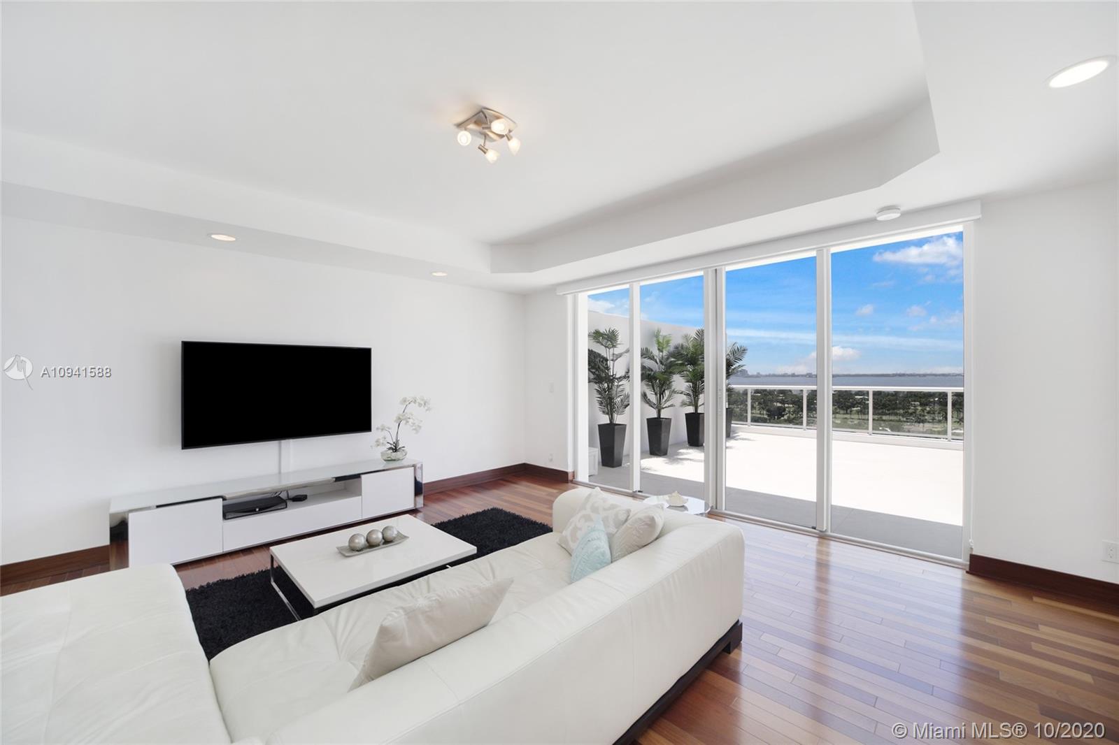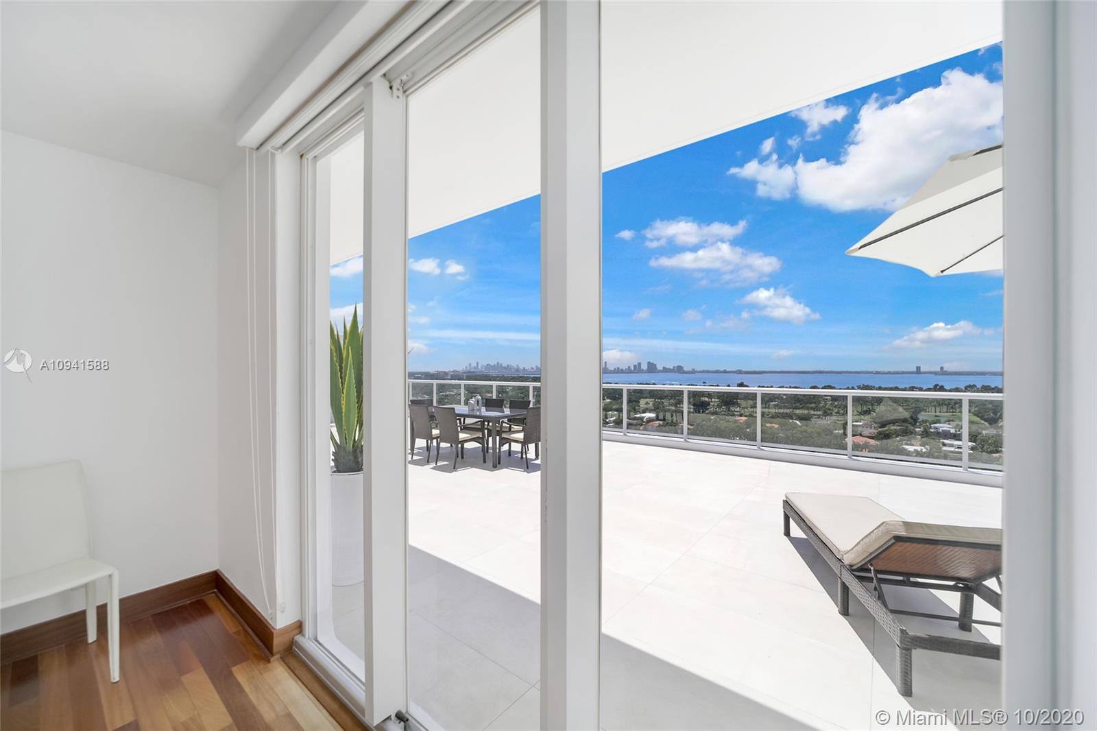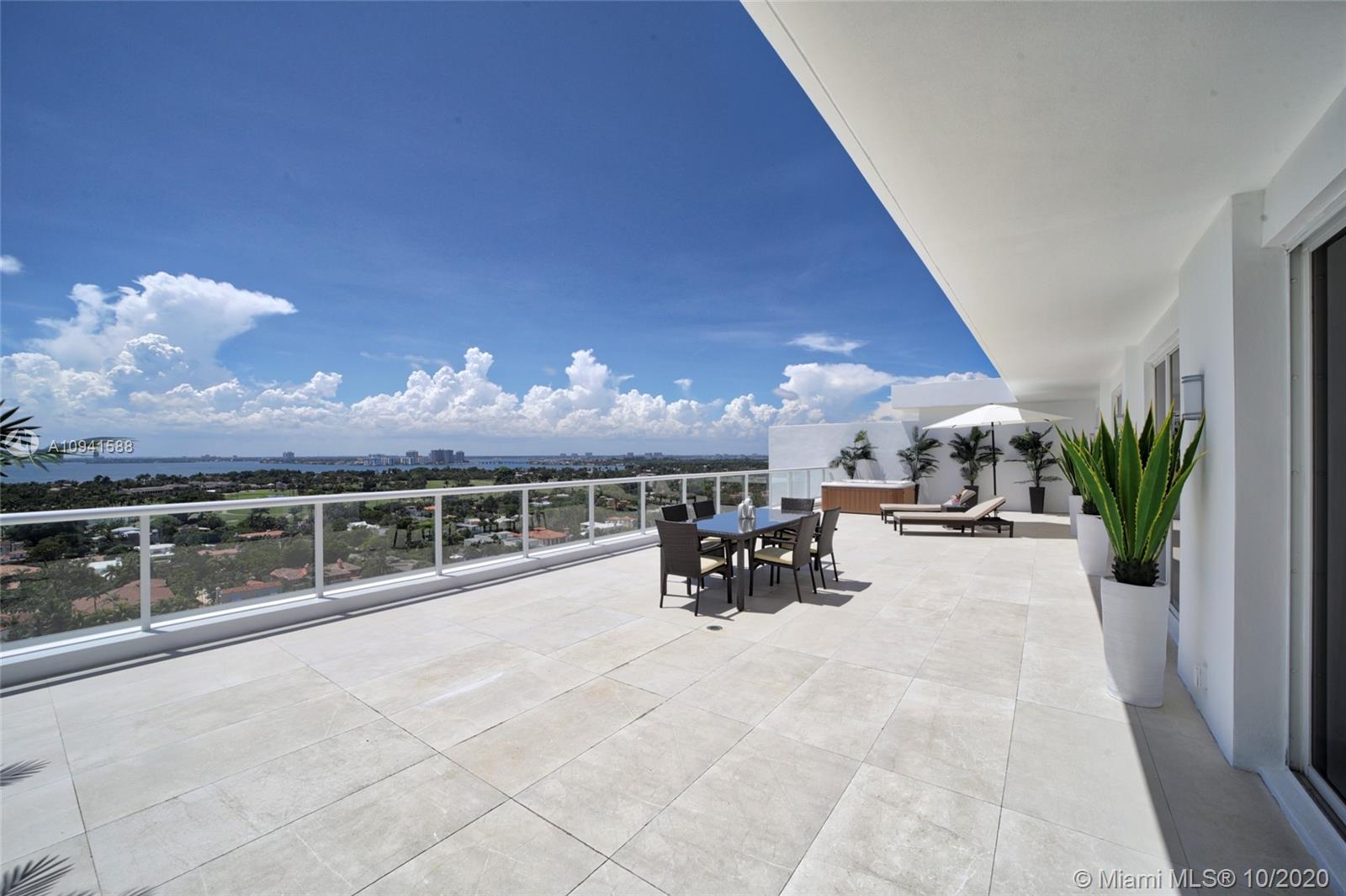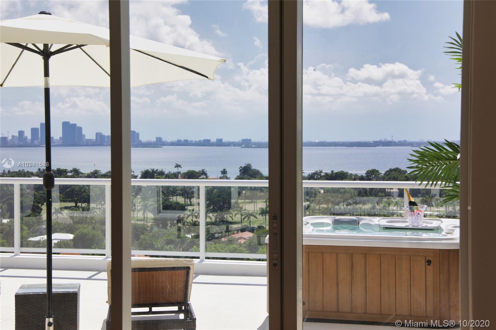 THIS LUXURY 3 BEDROOMS, 3 FULL BATHROOMS PENTHOUSE IS DESIGNED FOR YOU. 2,100 SQUARE FEET UNDER AIR CONDITIONING & AN ADDITIONAL 1,200 SQUARE FEET OF TERRACE W/ GORGEOUS VIEWS OF THE INTRA-COASTAL, BISCAYNE BAY, LA GORCE GOLF COURSE, & DOWNTOWN MIAMI AND THE SUNSET. AMAZING JACUZZI ON TERRACE. THIS UNIQUE PENTHOUSE INCLUDES A POOL-SIDE CABANA W/DRESSING ROOM & FULL BATH. THE RESIDENCE COMES FULLY FURNISHED, FEATURING ITALIAN SNAIDERO CHERRY WOOD KITCHEN CABINETRY, MIELE APPLIANCE & MEDIA CENTERS. CHERRY WOOD FLOORS. MARBLE BATHROOMS. LAUNDRY ROOM WITH SINK. PRIVATE STORAGE ON THE APARTMENT FLOOR. PRIVATE WINE CELLAR. 3 PARKING SPACES ASSIGNED. BUILDING HAS BEEN COMPLETELY RENOVATED WITH NEW GYM, POOL AREA, ELEVATORS, LOBBY AND HEATED POOL. BUILDING HAS PRIVATE MARINA. BOATERS DREAM.