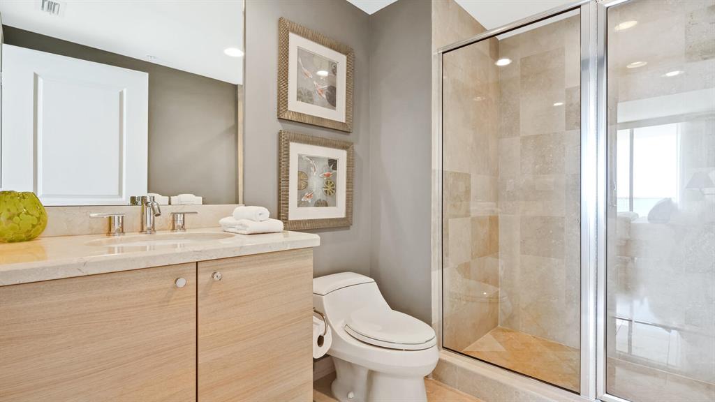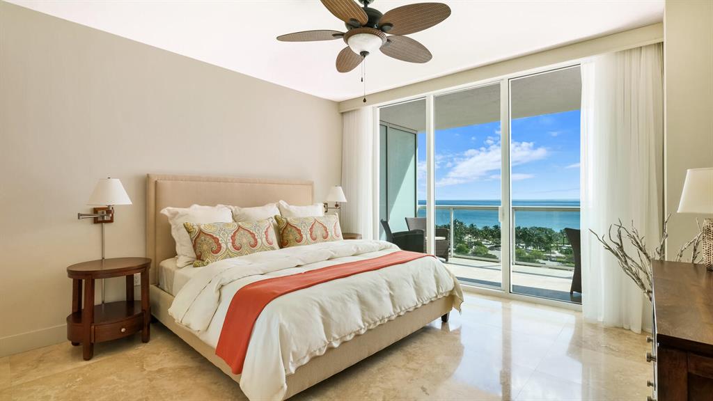 Gorgeous sky residence at the fabulous Plaza at Oceanside with private elevator point-of-entry stunning ocean views! Enter into a beautiful open floor plan with your living/dining grand salon perfectly capturing the spectacular ocean view. The residence features marble flooring though-out, motorized window treatments, floor-to-ceiling windows, a large upgraded ocean view designer kitchen with Poggenpohl European designed cabinetry, new Viking stainless steel appliances and granite countertops, an adjoining laundry center and an adjacent conveniently located work-from- home desk area. The expansive master suite opens to the terrace and has two closets and a luxurious bathroom with Roman tub and two sinks/vanities. The guest suite has a walk-in closet and ensuite bath.This high-end 2