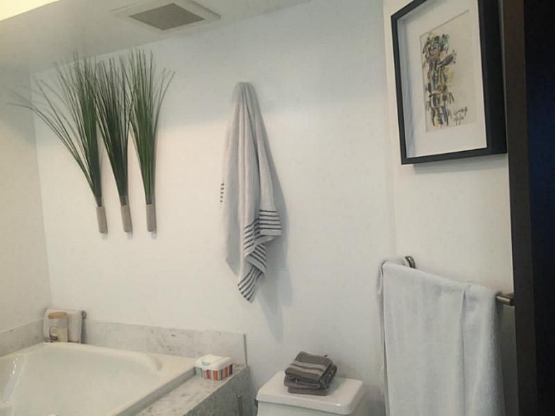 Beautiful remodeled apartment with magical ocean and city view. 1 bed plus one full den with closets and 2 full bath. Open kitchen with quartz countertop, stainless steel appliances, cristal white floors, electric shades in all windows. Rewired for cable and internet in all unit. Speakers in all apartment, modern lighting. Storage in 2nd floor. Enjoy resort lifestyle with white sand service (food,towels,chairs) in the beach. Enjoy full gym, racket, squash tennis courts. Beauty salon, spa and 2 restaurant