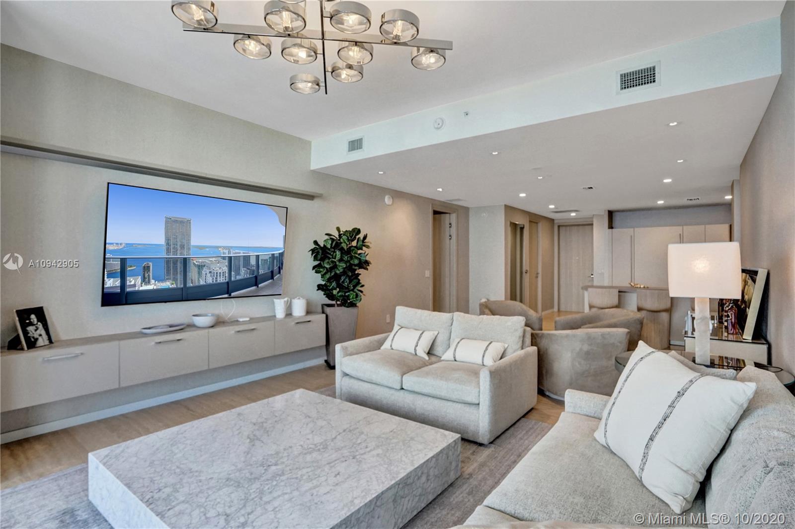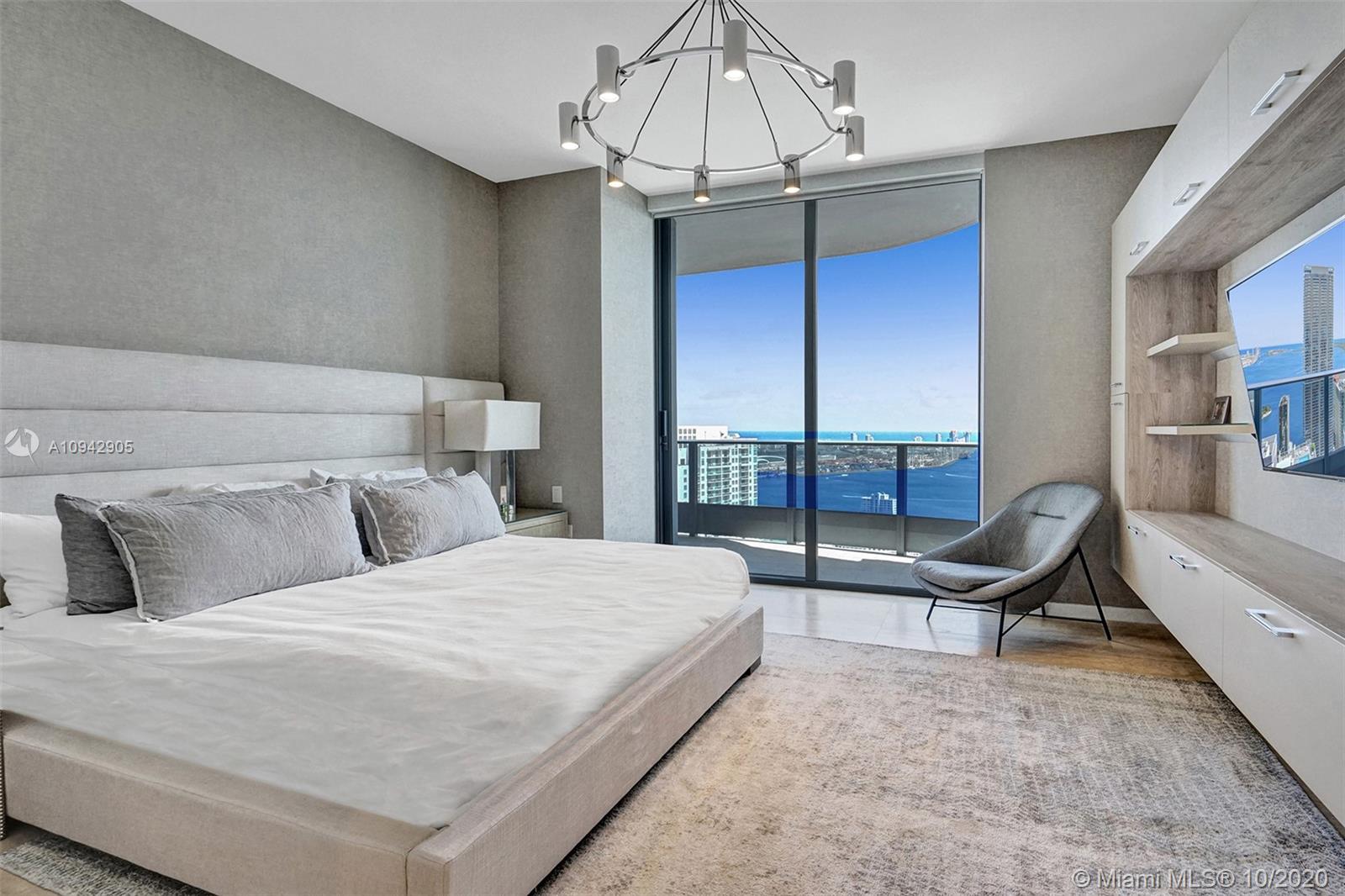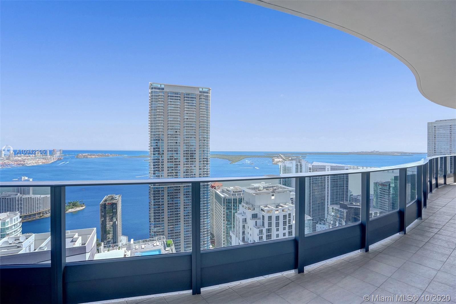 Panoramic east views capture Atlantic Ocean, Biscayne Bay, Magic City Skyline and the Port of Miami from this magnificent Penthouse perched atop the 60th floor. This spectacular Penthouse is the epitome of luxury, chic urban living. Some features include upgraded built-in furniture in living room and master bedroom. Beautiful light fixtures installed throughout. Wall fabric installed by Orlean. Travertine floors, Snaidero kitchens, and 10ft ceilings. No detail spared in this 64-story wonder built by Ugo Colombo’s CMC Group. State of the art fitness center and spa. Other great amenities include recreation rooms, children’s play area, game room, and movie theater. Brickell area cafes, bars and restaurants are just an elevator ride away. Just steps from Brickell City Center.