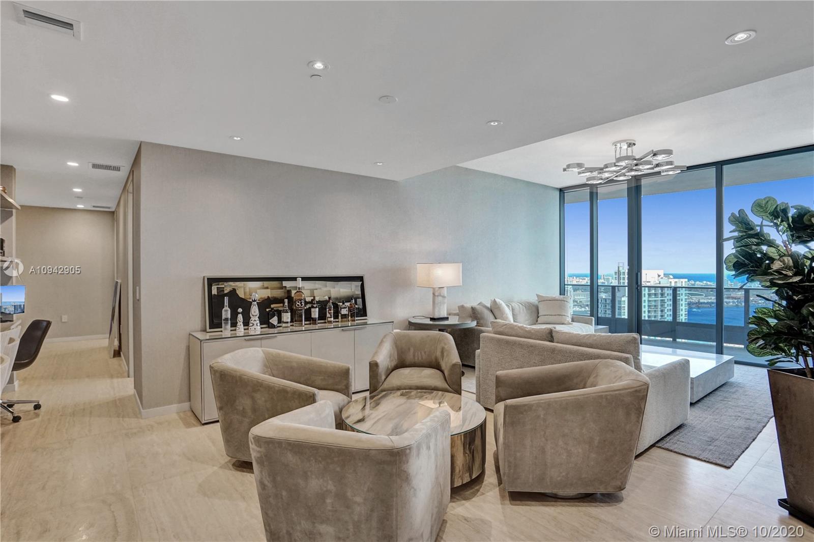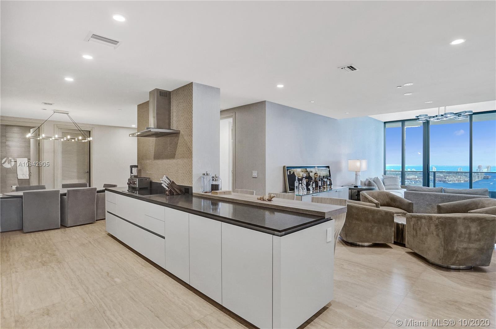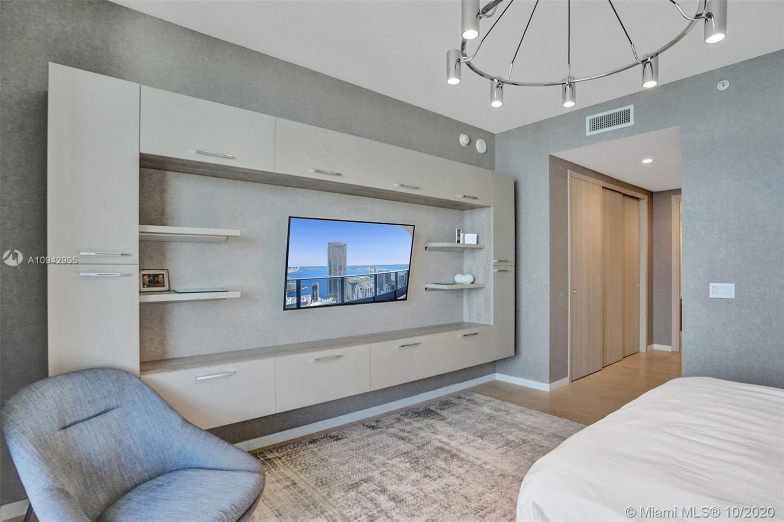 Panoramic east views capture Atlantic Ocean, Biscayne Bay, Magic City Skyline and the Port of Miami from this magnificent Penthouse perched atop the 60th floor. This spectacular Penthouse is the epitome of luxury, chic urban living. Some features include upgraded built-in furniture in living room and master bedroom. Beautiful light fixtures installed throughout. Wall fabric installed by Orlean. Travertine floors, Snaidero kitchens, and 10ft ceilings. No detail spared in this 64-story wonder built by Ugo Colombo’s CMC Group. State of the art fitness center and spa. Other great amenities include recreation rooms, children’s play area, game room, and movie theater. Brickell area cafes, bars and restaurants are just an elevator ride away. Just steps from Brickell City Center.