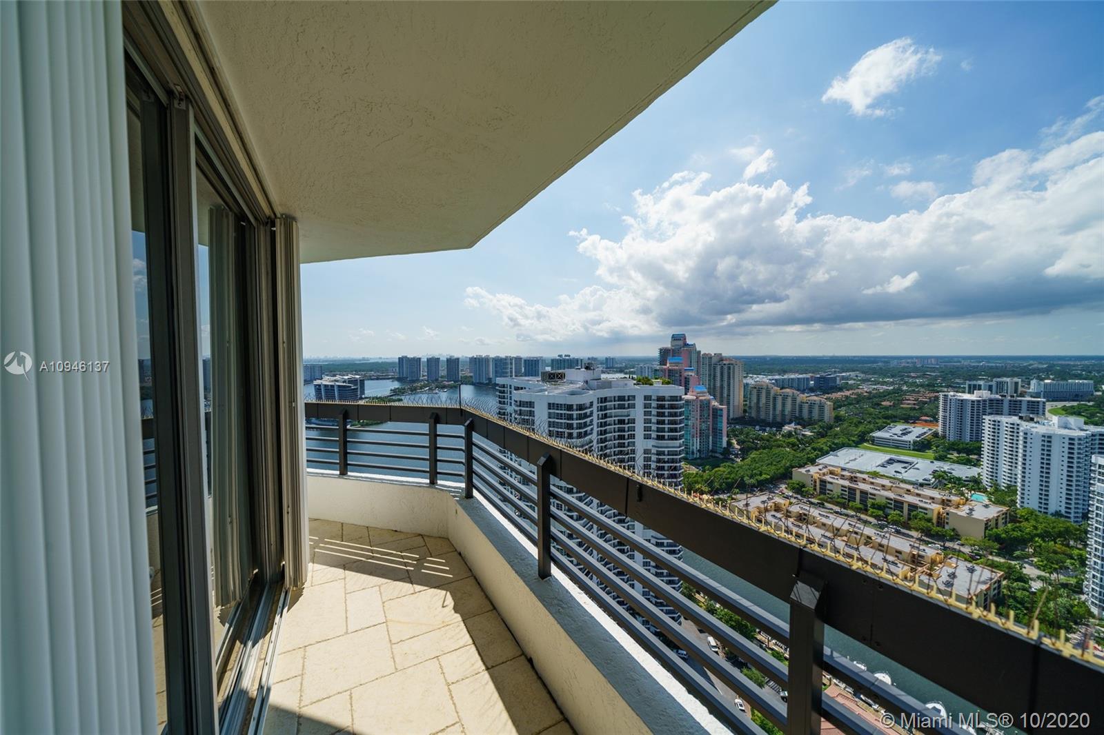 Lower Penthouse on 40-th floor with Unobstructed 180 degree Panoramic views from wrap-around balcony of Atlantic Ocean, Bay, Turnberry Golf course and Marina. Large Completely Remodeled Apartment with 3 Bed rooms and 3 full baths. Open Kitchen area with Natural Day light makes it Bright with Floor to Ceiling high impact windows. Modern Hurricane Shutters. Tile Flooring throughout apartment. Washer/Dryer inside. Internet & Cable TV included in Maintenance. This Gated Luxury Community includes Amenities: Large heated Pool, Fitness center, Jacuzzi, Sauna and 8 Tennis courts, 24-hr Security, Reception. Storage bin. 2-nd Parking $36 p/m. Free city Shuttle Bus. Many Parks, sport activities, 10 minutes driving to the Beach. A+ SCHOOLS of Aventura. Seller is MOTIVATED. Apartment VIDEO link below