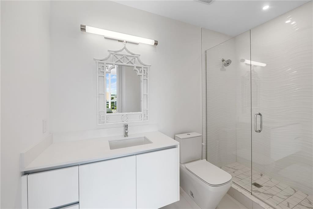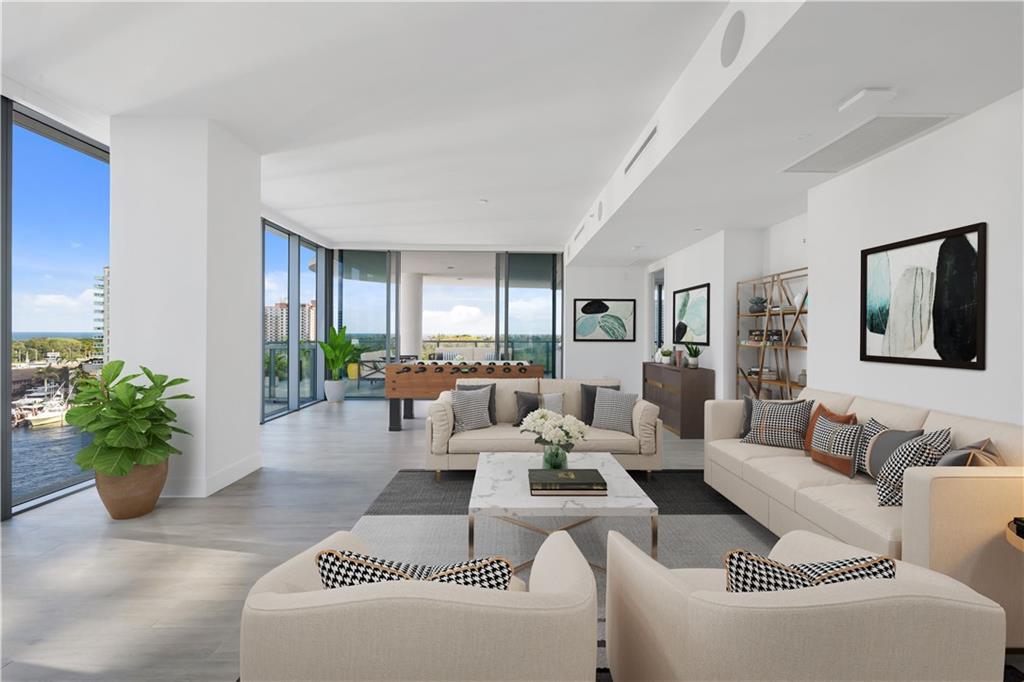 Best Priced Unit in Building! Live Large - 3200 sq ft home located on the intercoastal waterway offering a daily boat parade and priceless views of the intercoastal and ocean. Take in the gorgeous sunrises and sunsets in your well appointed through unit. Barely lived in, this home is the perfect blank canvas to create your dream home - Built in 2018, this boutique building consists of only 35 units. The 3/3/1 split floorplan offers a fabulous chef's kitchen, voluminous ceiling heights, and tons of natural light that flood the unit - two large covered terraces to entertain your guests - outdoor kitchen with custom built ins- 24/7 staffed lobby, fitness room, pool, cucina, and club room - Walk, bike, to beach, dining, shopping, and grocery stores.