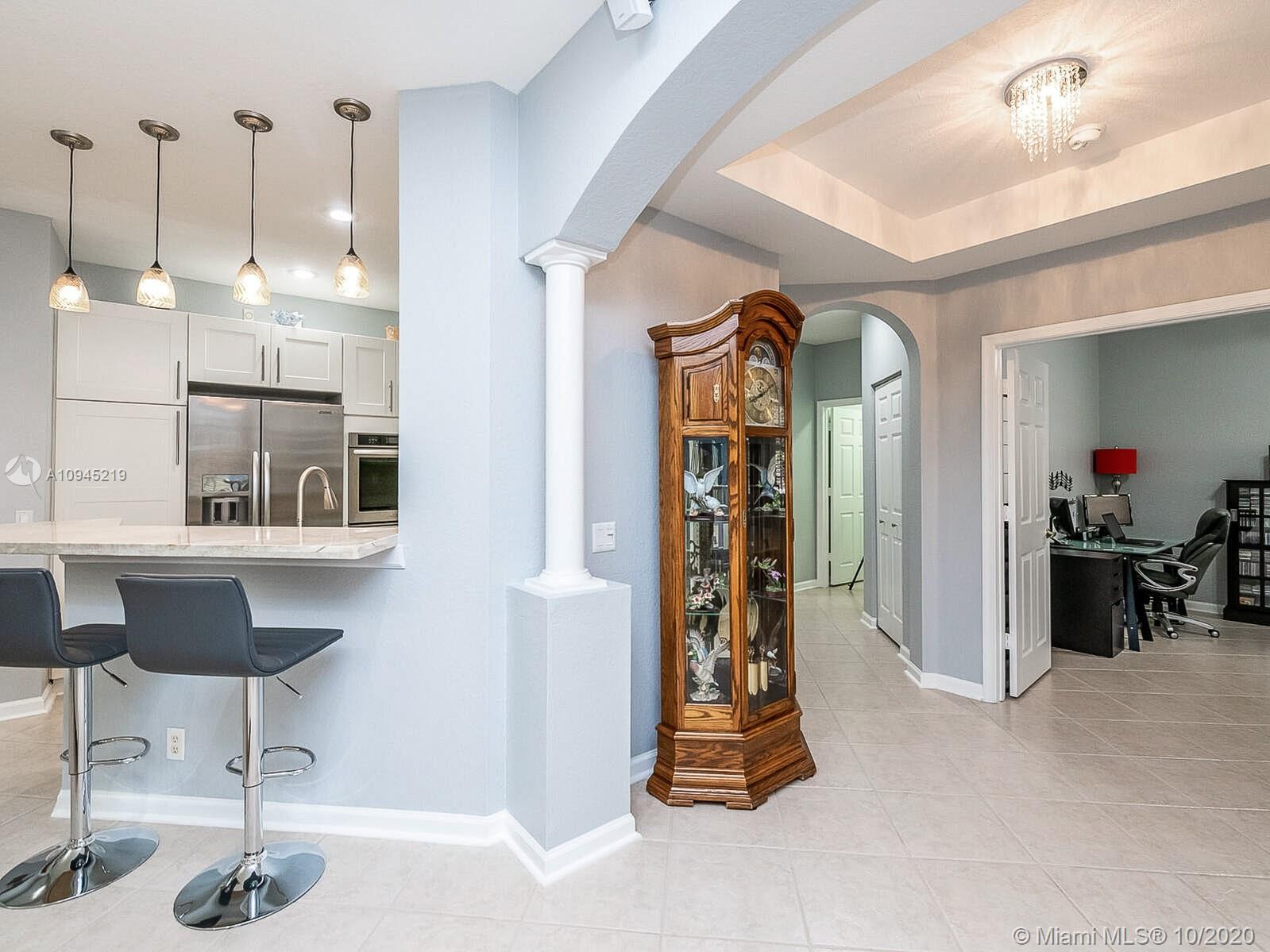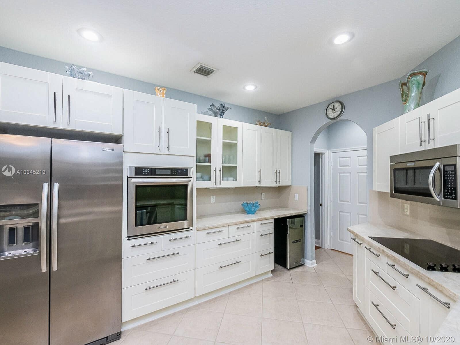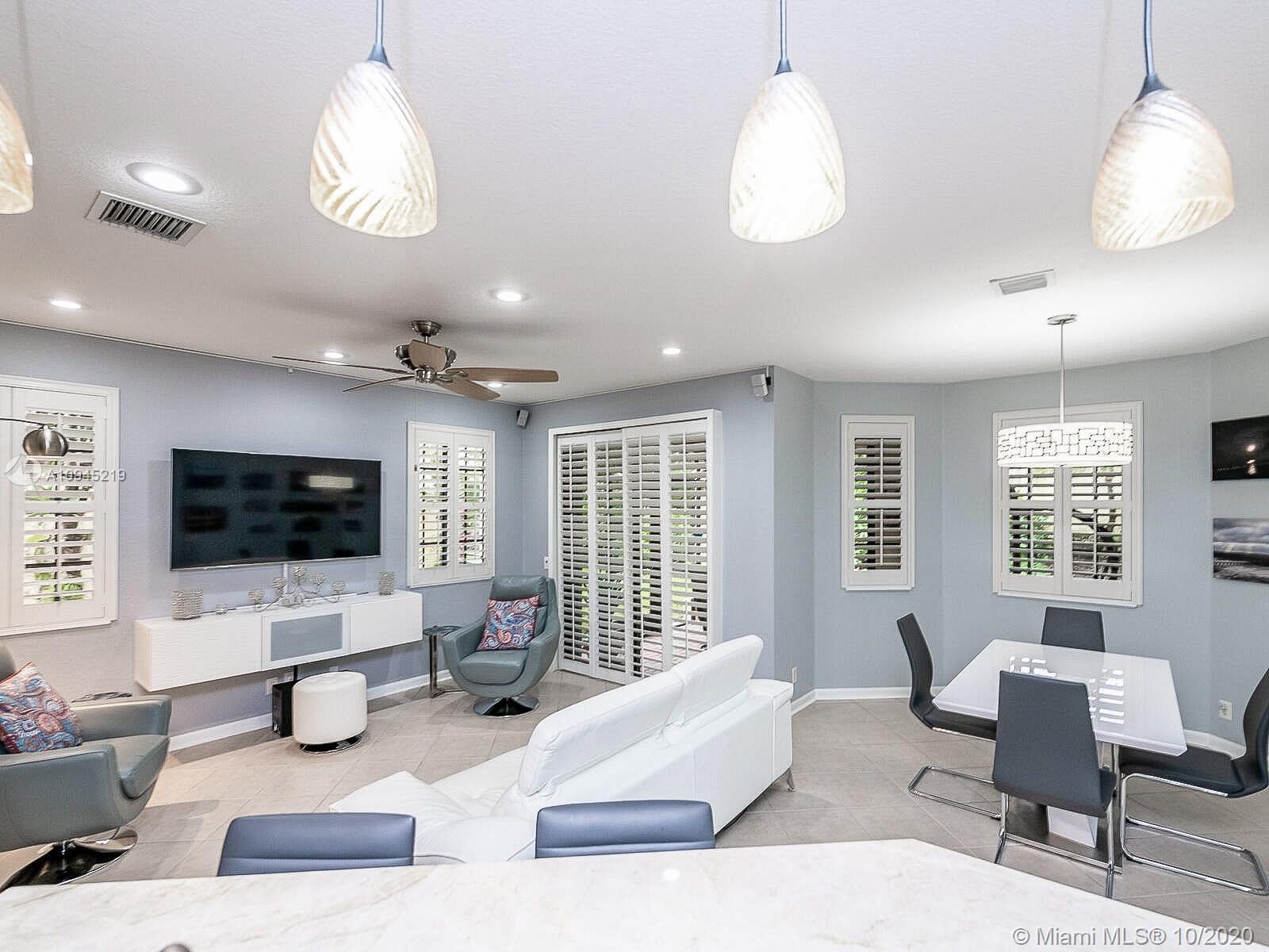 Immaculately maintained, move-in ready Coach Home in the heart of Weston. Steps away from Town Center w/restaurants, drug store, supermarket, specialty shops, and more. Ground floor unit with 1,610 SF under AC, 2 beds + den/office, 2 baths, 2-car garage. Upgraded kitchen w/Kitchen Aid SS appliances, Quartzite countertops, custom cabinetry, and breakfast bar. Beautiful solid wood flooring in bedrooms and tile floor in living areas. LED high hat lighting, Plantation style shutters, painted in neutral colors, His & Her walk-in closets, ADT alarm system, newer AC, accordion storm shutters, fully-screened patio, brick-paved private courtyard, security gate, conveniently located minutes from I-75, 595 Expy, and 869 Sawgrass Expy.