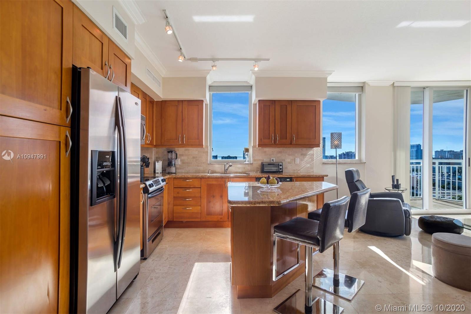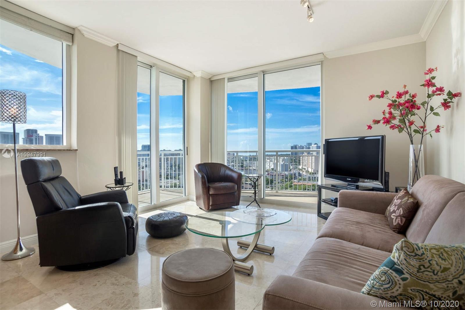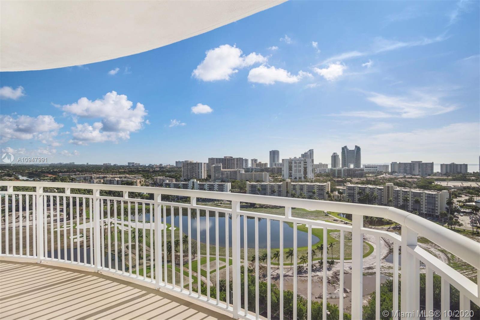 Welcome to your new home! This incredible corner unit features amazing unobstructed views to the South East where you can see the Ocean, City, Intracoastal, Golf and Gulfstream Park. The unit features a extensive wrap around balcony, washer and dryer, split floor plan, tile floors, cooking island, Stainless Steel Appliances and much more. It is offer furnished as is. The building features heated community pool, spa and steam room, club room, pool room, theatre, gym, tennis courts, jogging track and much more. It is conveniently located minutes away from the beach, shops, restaurants, Gulfstream Park and Aventura Mall.