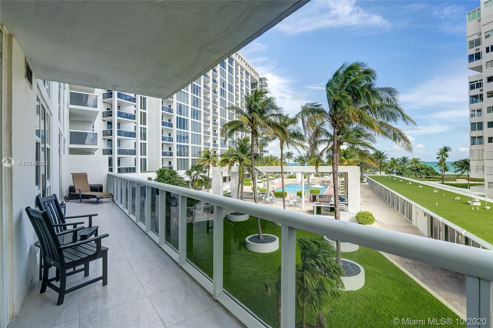 SPECTACULAR DIRECT OCEAN, BEACH, AND POOL VIEW WITH OVER-SIZED BALCONY. THIS UNIT HAS THE LARGEST BALCONY IN THE LINE (APPROXIMATELY DOUBLE IN SIZE). 2 BED 2 BATHROOM WITH RENOVATED 40X40 CERAMIC TILE FLOORS THROUGHOUT. MODERN OPEN KITCHEN WITH QUARTZ COUNTERTOPS, NEW CABINETS, NEW MODERN STAINLESS STEEL APPLIANCES, AND TOP OF LINE WASHER AND DRYER. ENJOY AN OCEAN VIEW FROM THE LIVING/DINING ROOM, BEDROOMS, AND KITCHEN. 24 HR SECURITY, VALET, MOVIE THEATER, GYM, SPA, SAUNA, STEAM BATH, JACUZZI, CONVENIENCE STORE, COFFEE SHOP, BEACH SERVICE. COMMON AREAS RECENTLY UPGRADED & REDECORATED. FEW BLOCKS FROM WORLD FAMOUS BAL HARBOUR AND SURFSIDE SHOPPES, EXCELLENT RESTAURANTS. OCEANFRONT WALKING -JOGGING PATH, BIKE PATH TO SOUTH BEACH. CENTRALLY LOCATED BETWEEN MIAMI AND FORT LAUDERDALE AIRPORTS.