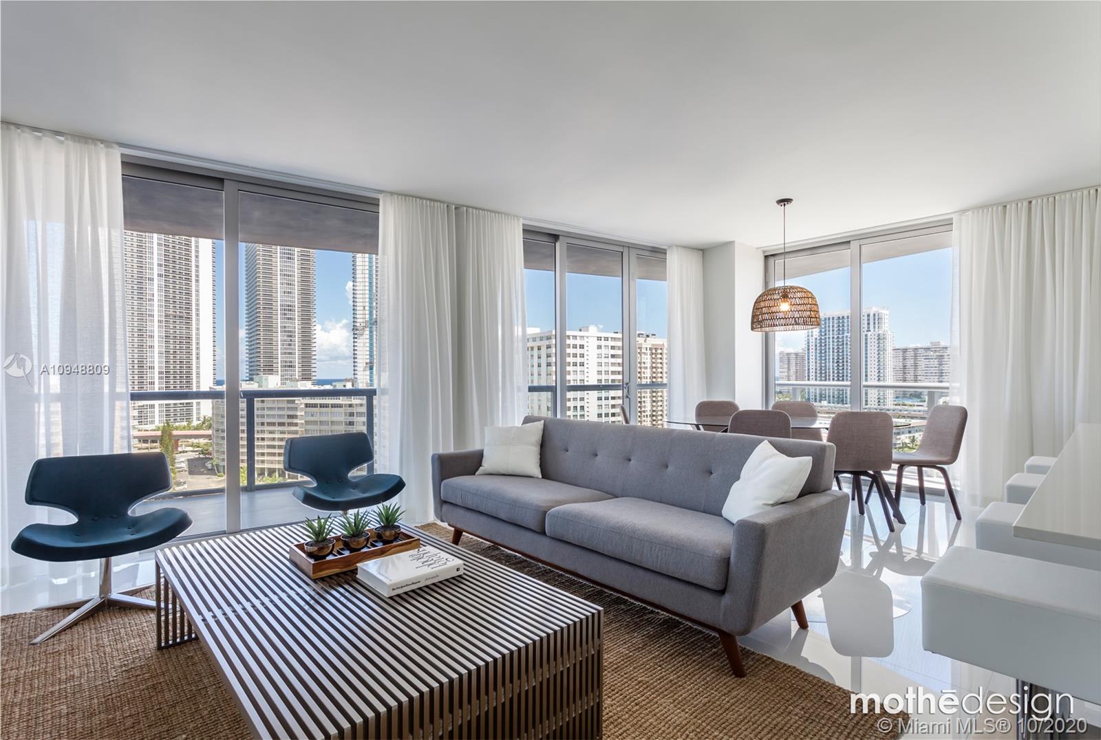 Gorgeous 3 Bedroom/ 3 Bathroom with amazing intercostal and ocean view. Completely furnished and ready to move in. Beach Access, private rooftop pool for residents only. Live in vacations 365 days per year, 5 star hotel experience with all the hotel amenities . This large Condo doesn't have rental restrictions and can be rented through all the short term rental platforms like Airbnb, Vrbo, Expedia and more. Great returns of investment, Short term rental management available.