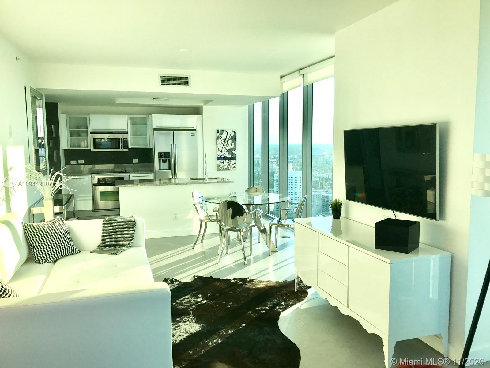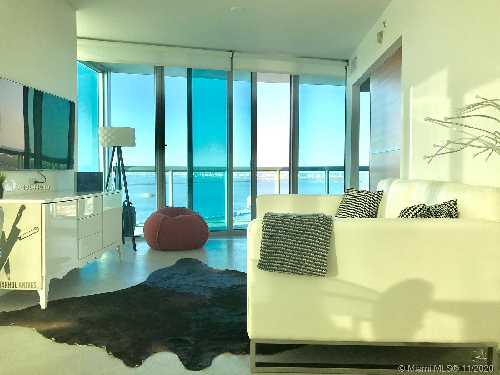 Arguably the BEST Miami view at the LOWEST price. GORGEOUS 2/ Bedroom 2 Bathroom Condo in the heart of Miami. TWO balconies to enjoy views from both the East and the West captivating both sunrises and sunsets. Stunning Open Kitchen with Island and Room Seating. Modern polished concrete floors (easy to maintain and preserve the style). Master Bathroom His and Hers sink with large shower. 1 Assigned parking space located on 6th floor (#53) at close proximity to cage storage unit. (Sunrise and Sunset Pools, SPA and Gym with stunning views of the bay), BBQ area, Beach Volleyball Court, Game Room, Business center, 24-hour security, concierge & Valet. Walking distance to numerous attractions and 7-minutes from South Beach. FURNITURE INCLUDED- PET FRIENDLY BUILDING.
