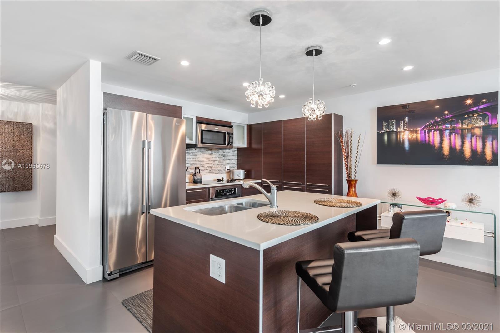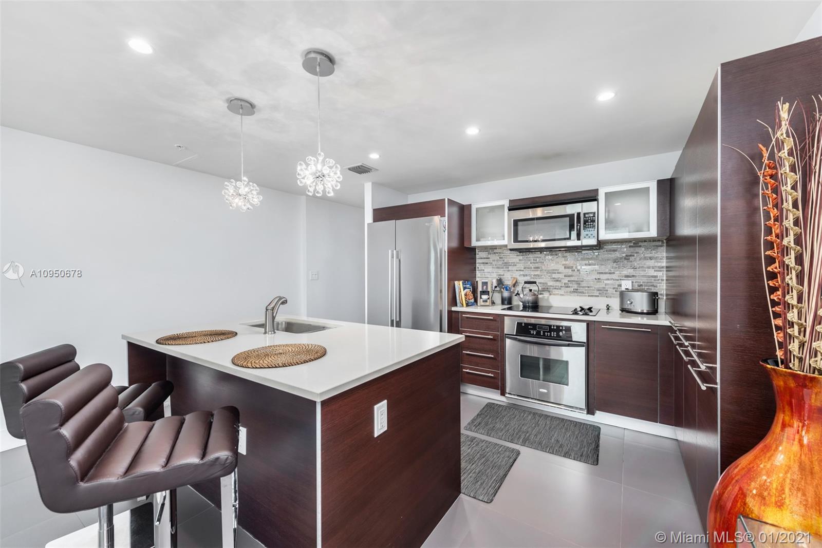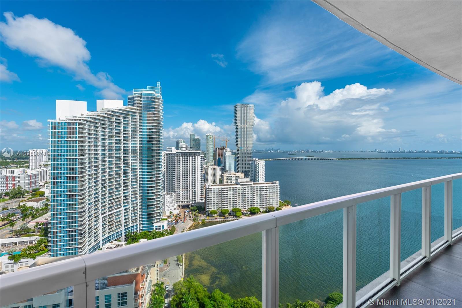 Your opportunity to own an upgraded 1-bedroom + den residence in Edgewater’s Quantum on the Bay! Enjoy panoramic Biscayne Bay and city views in this residence w/ floor to ceiling windows and lots of natural light. Plus, access your balcony from living and bedroom. High-quality upgrades: modern porcelain floors, motorized window treatments, updated bathroom, custom closets + more! Den can be enclosed as 2nd bedroom or office. Building amenities: 2 heated pools, 2 story gym w/ classes, theater, business center, party room, billiards, sauna, valet, full concierge & 24-hour security. Next to beautiful Margaret Pace Park; walk to Publix, cafes and restaurants; quick ride to Downtown, Wynwood, Design District, Brickell and South Beach, easy access to 95. Don’t miss out! Furniture also for sale.