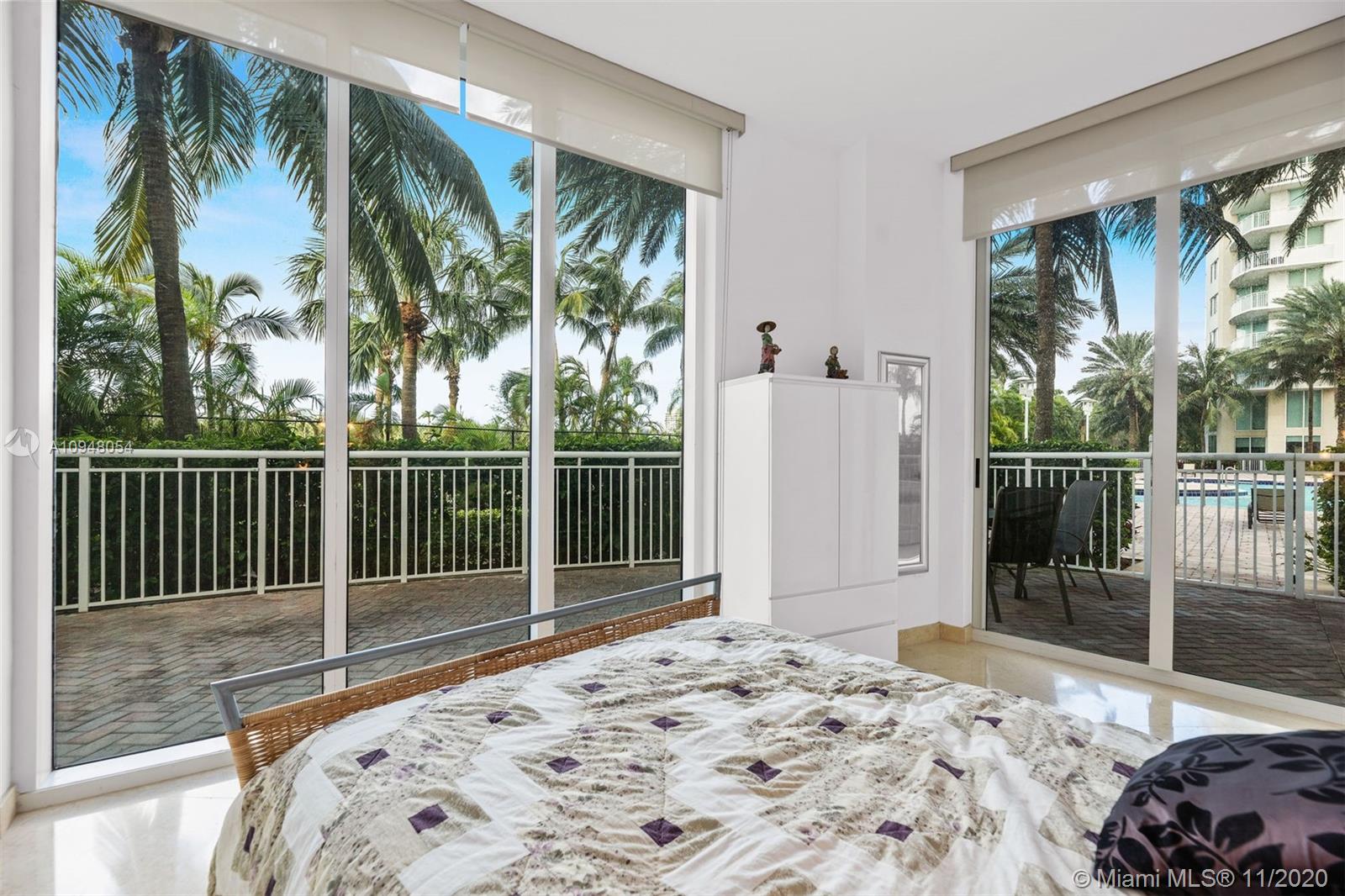 Exceptional, rarely available 2-story corner townhouse with pool, lake, & golf course views. This fully updated 2/2.5 condo has large private outdoor terrace leading to pool. Dramatic 20 ft. vaulted ceilings throughout spacious living area, & floor to ceiling impact windows maximize your views & natural light. Fully equipped modern kitchen is perfect for entertaining with granite countertops, SS appliances and wood cabinetry. Marble and Brazilian hard wood floors. Convenient 2nd floor laundry room & 2 assigned parking spaces plus valet. Amenities include 24 hr. sec., business center, theater, tennis, spa & fitness center, jogging path, heated pool, billiard & party room. Walk to the beach, coffee and shops. Maint. INCLUDES cable/internet, H2O/sewer/trash/appliance contract. Broker remarks.
