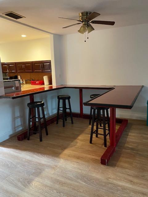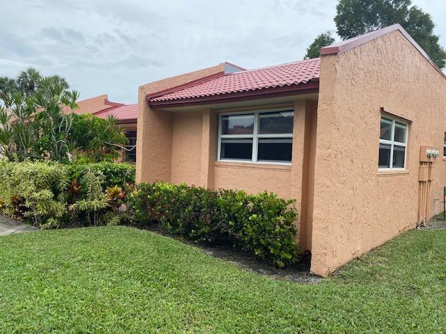 Corner 2/2 villa with wood floors, updated kitchen, impact windows, new bath sinks and washer & dryer on large enclosed porch. Many custom shelves and work areas. Large concrete patio in front for seating and small seating area in back. Cash or conventional with 25% down. No dogs in Phase A, cats & birds allowed. Close to front gate and walking distance to shops. With in 1 mile to the turnpike and just minutes to shopping, beaches, and highways.