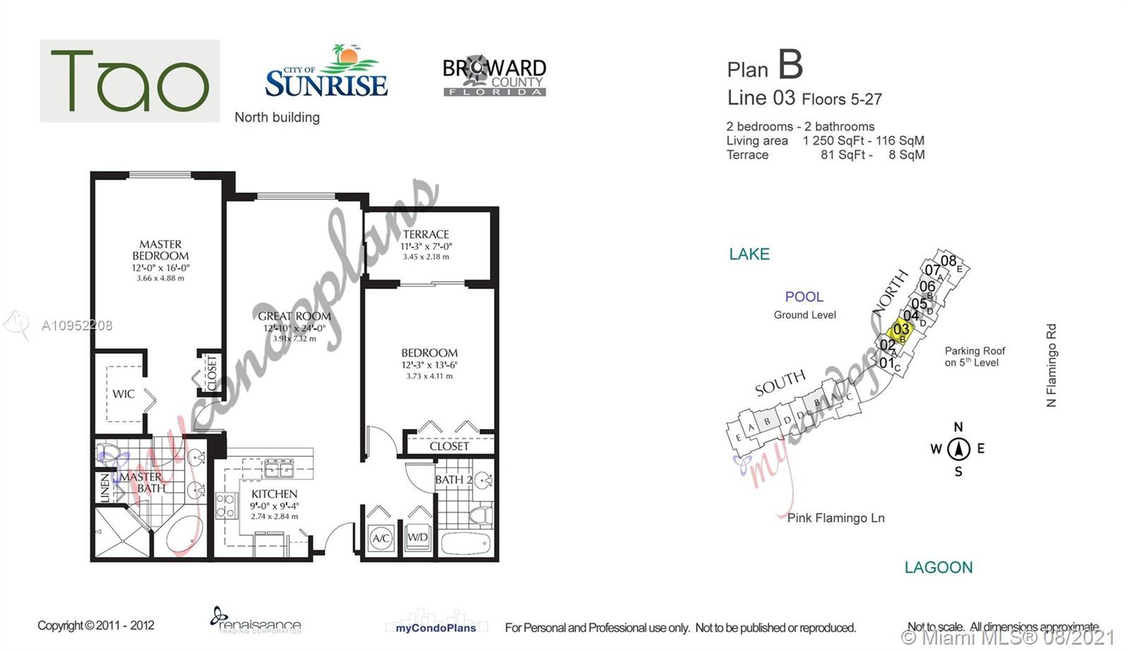 TAO is a high rise building strategically located and with a beautiful view of the lagoon and everglades. This unit features new laminated floors in bedrooms and tile in living area. Stainless steel appliances , granite countertop and beautiful backsplash. A/C is 2 years old. Most important 2 assigned parking spots. Resort living facilities tennis court, BBQ area, state of the art gym , heated pool , tennis and more