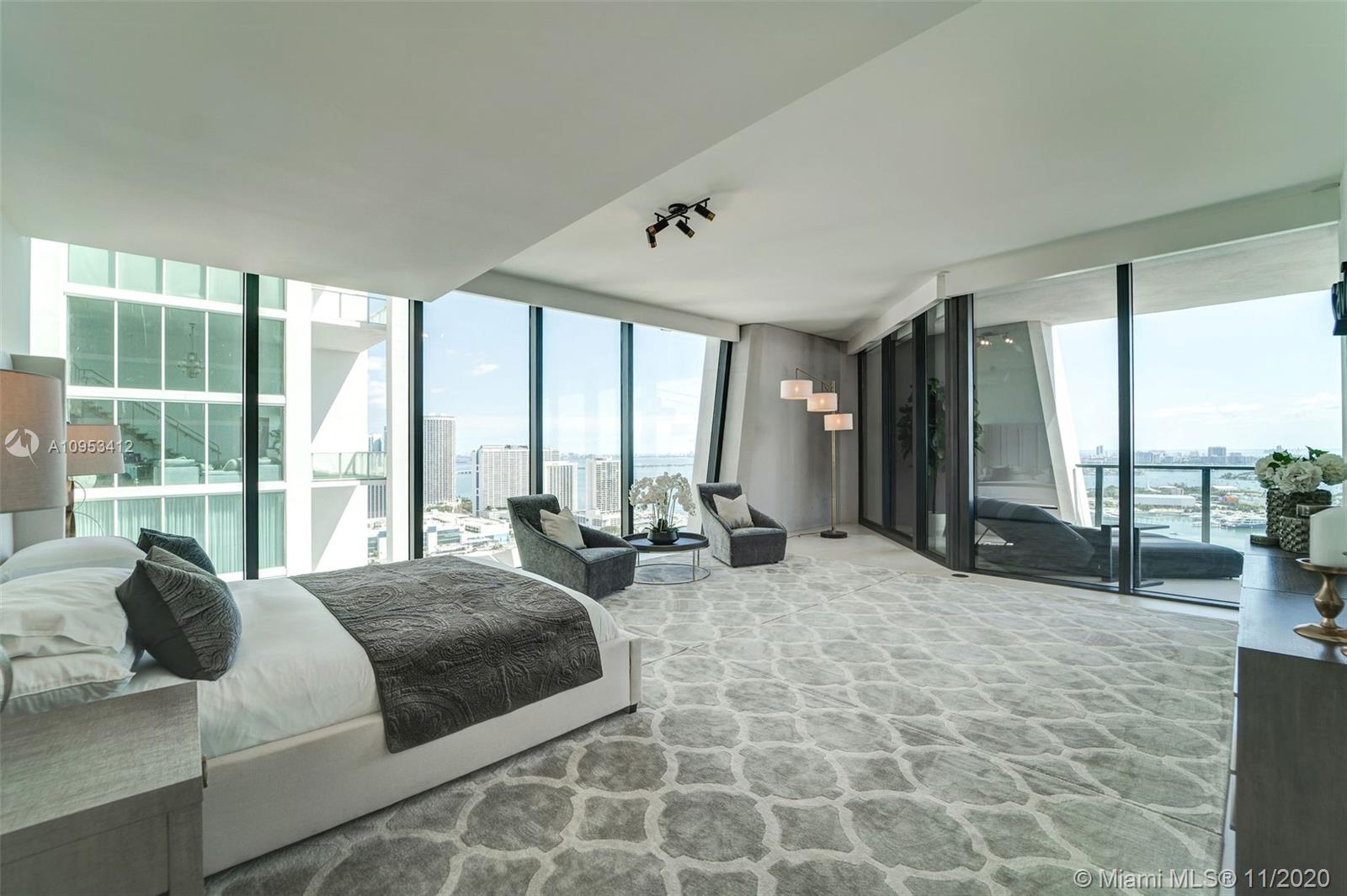 One thousand Museum, a triumphant expression of great design by legendary architect Zaha Hadid. This magnificent architectural landmark is Miami's most iconic building with only 84 impeccable curated homes offering an unprecedented level of white glove service and amenities. This residence is a Half floor featuring a flow through floor plan with unobstructed Biscayne Bay and Atlantic Ocean views including the port of Miami and cruise ships. This 4744 sf of pure modern luxury consists of 4 beds, 5.5 baths, including a beautiful Master suite as well as its large terrace off the great room.