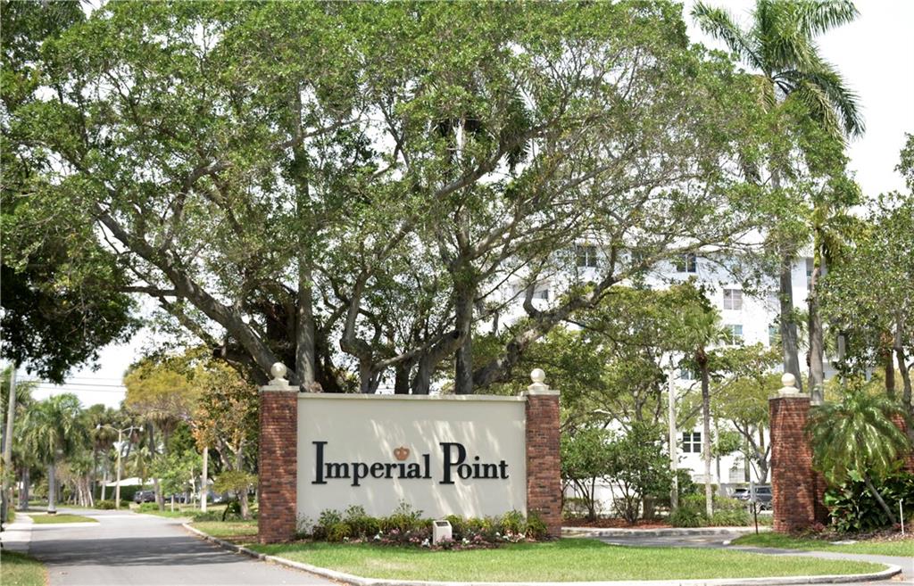 Large corner unit, amazing natural light and tons of closet space located in the beautiful neighborhood of Imperial Point. 40 year building inspection completed. Repairs have been finished: new roof, outside of building: painting, pool, lobby, landscaping and balconies. This unit has brand new impact windows and balcony sliding door with new plantation shutters. One of the larger 2 bedrooms, 2 baths located in the most desirable SE corner on the 4th floor. Overlooking the beautiful tree lined entrance of the Imperial Point neighborhood and condo pool area. Bike room storage. A stackable washer/dryer can be added. This unit has one of the limited and highly desired covered parking spots adding extra value. Secured lobby entrance. Special assessment to be assumed:$234 per month til 2032.