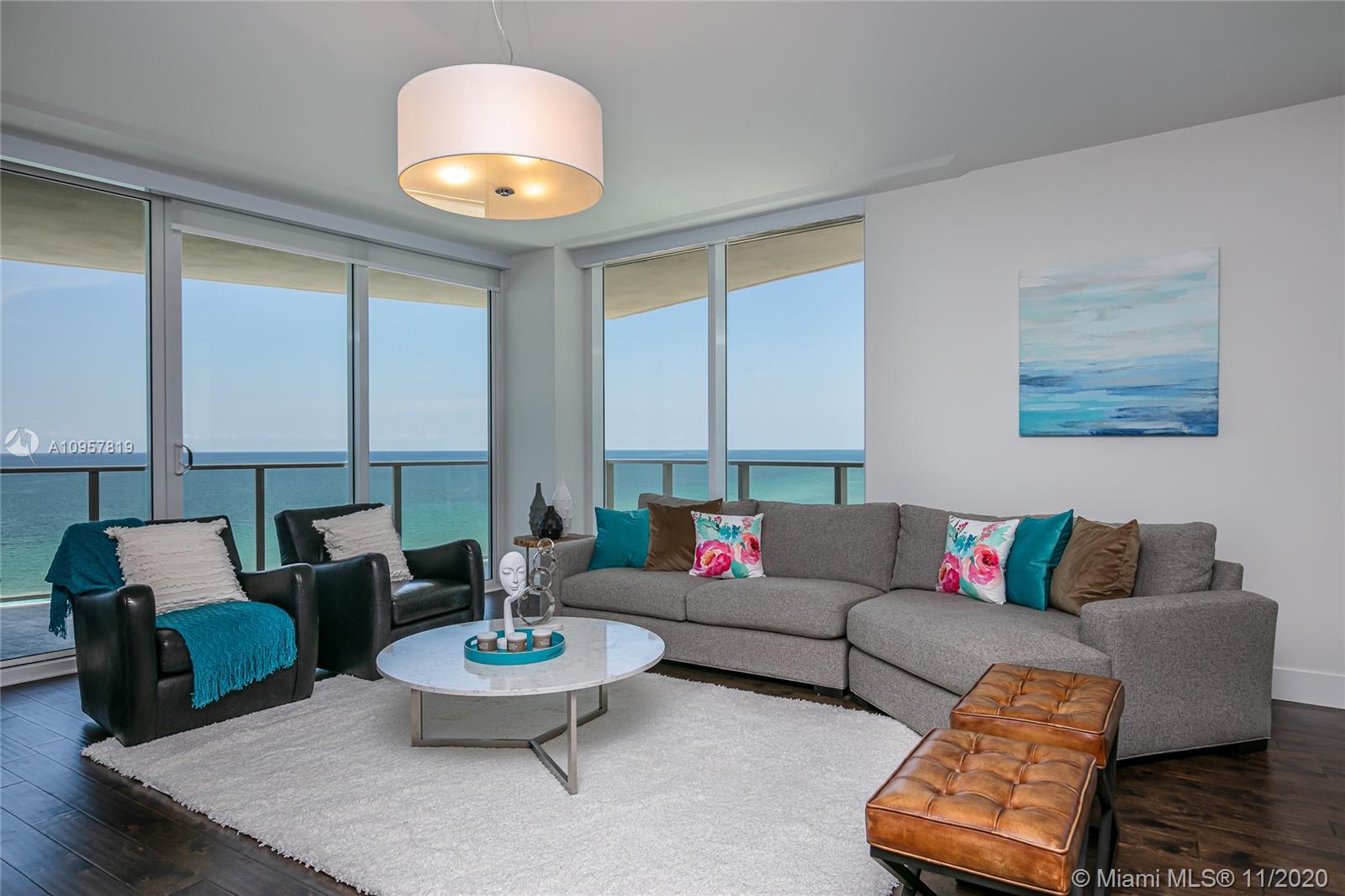 Fall in love with this gorgeous 3 bd, 3 1/2 bath + a den/office residence. Floor to ceiling impact windows, high-end appliances and finishes throughout, smart-home features and designer touches make this the ultimate vacation or full-time residence for the most sophisticated buyer. Enjoy the sunrise from your private oversized terrace and the master suite. Spacious split floor plan with plenty of closet space. Great value in the famous Apogee Beach Condo - a luxury, boutique ocean-front complex with 5-star amenities: 24/7 concierge and valet service, friendly staff who know your name, professional management team, full beach service, state of the art gym featuring Peloton Bikes, sauna and massage rooms, elegant pool area, private lounge, billiards room and more.