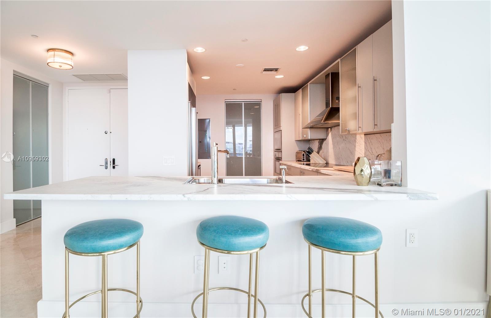 Fully renovated residence with stunning intracoastal views. A private elevator landing opens to a spacious 2,059 sqft living space with elegant travertine flooring throughout. Presenting 2 bedrooms, 3 full baths and 1 half bath, this corner unit offers a chef-inspired kitchen, granite counter tops and back splash, Sub Zero and Miele appliances. The master bedroom features beautiful customized closets, his & her baths, dual sinks and spa tub. Floor to ceiling windows surround an oversized wrap around private terrace perfect for relaxing or entertaining. Living Room and Master feature electric blinds. The full service Bath Club offers the ultimate in luxury living with two clay tennis courts, pool, beach access, hot tub, gym, spa and restaurant service.
