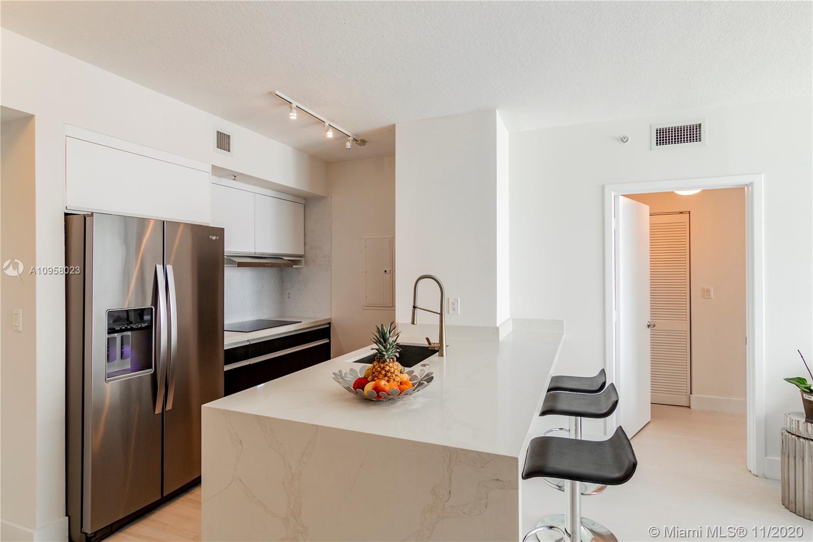 Beautifully finished 2 bedroom, 2 bathroom unit in the Heart of Downtown and Brickell. Capture Beautiful views of Biscayne Bay, Port Miami, Miami Beach and Downtown Miami from every room in the unit. Multiple updates throughout the unit including newly finished bathrooms and kitchen. Impeccable condition. One Miami East Condo is located at the Miami River delta, where the river meets Biscayne Bay. The building offers a multitude of amenities and services including, Fitness center, pools, full service business center, concierge, valet and a bayfront Cafe that offers casual indoor and alfresco dining. This is the Miami lifestyle at its finest. Wont last!