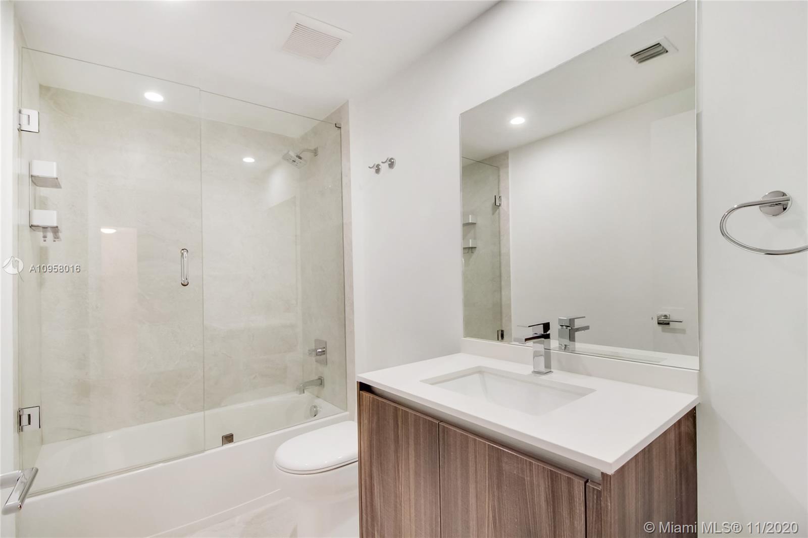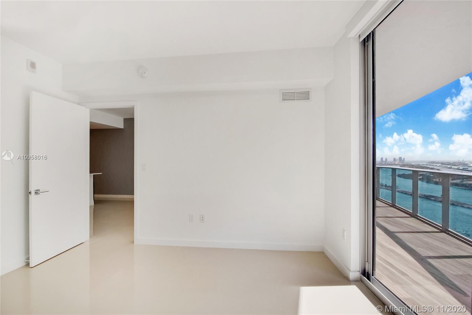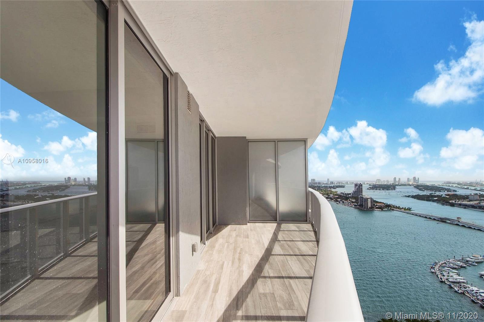 The only 1 bedroom plus Den (convertible) 2 full bath unit type in the building with private elevator + foyer! The residence features 2-car tandem parking, porcelain flooring, walk-in closets, window treatments, Quartz counters and stainless steel appliances in kitchens. Come live the lifestyle at the Miami's most desirable neighborhood-Edgewater, in the city's latest and most desirable luxury waterfront building in front of the Margaret Pace Park. Five-star resort style amenities include sunrise and sunset heated pools, hot tub overlooking Biscayne Bay, BBQ, spa, sauna, steam room, resident's lounge with a private party room, business center, fitness center, yoga and pilates studio, movie theater, kids playroom and more.