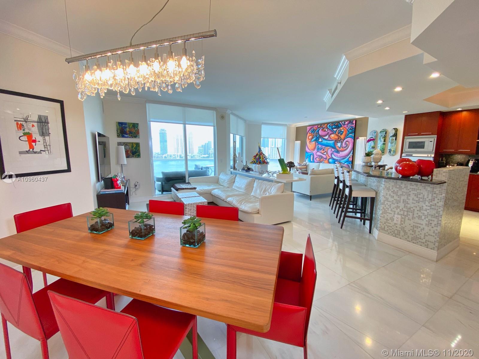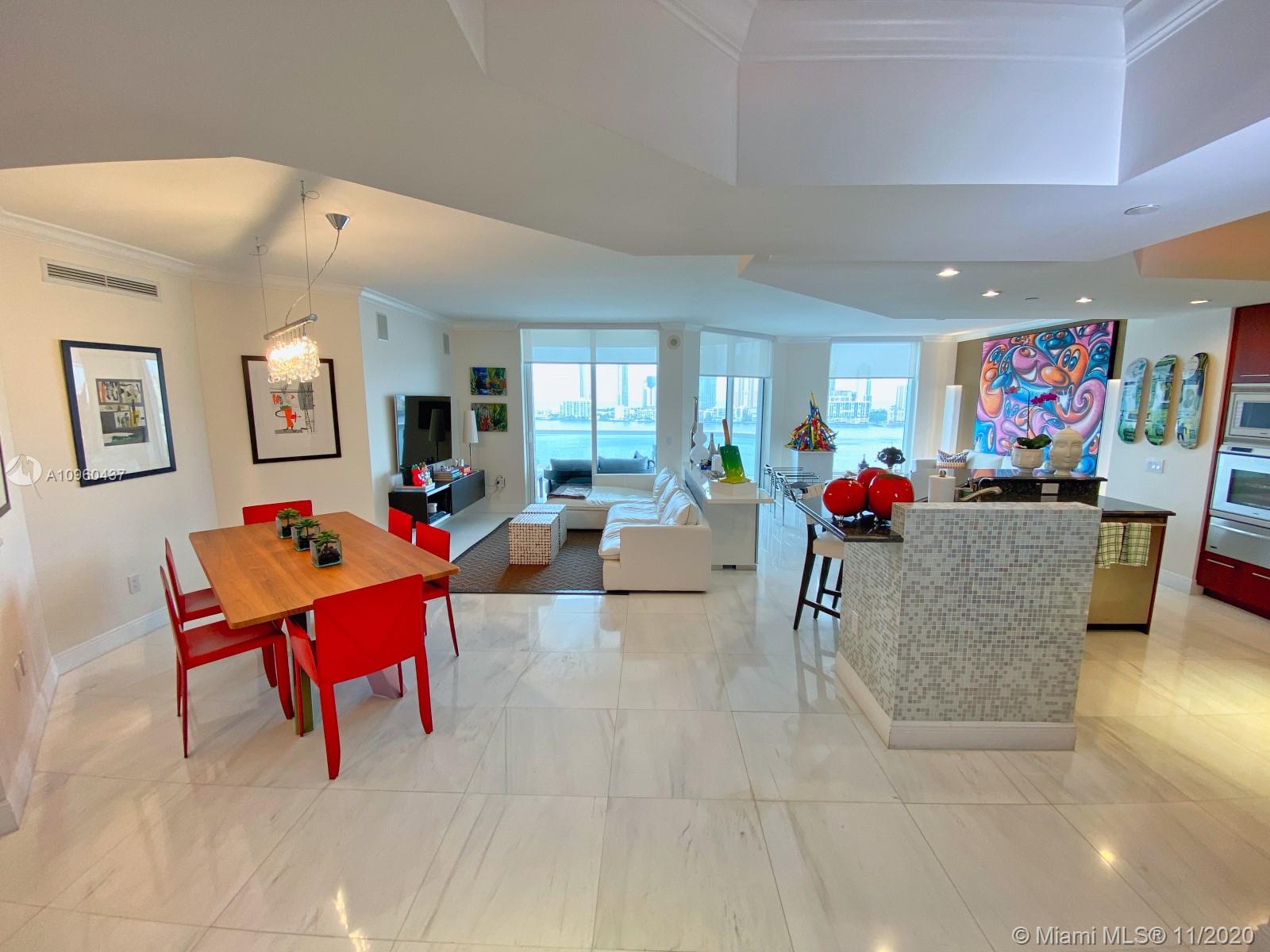 This is the perfect place to enjoy inmediately! Spectacular flow through 3 bed/2.5 baths 2180 SQFT turn key residence - Furniture included! Amazing intracoastal & ocean views. Top of the line kitchen with Gaggenau and Miele appliances. Enjoy the best lifestyle at Williams Island! Tennis courts, Gym, Spa, Marina, Restaurants, kids playground & more! *Wall Art, Paintings, Pictures,Sculptures & accessories are NOT included.