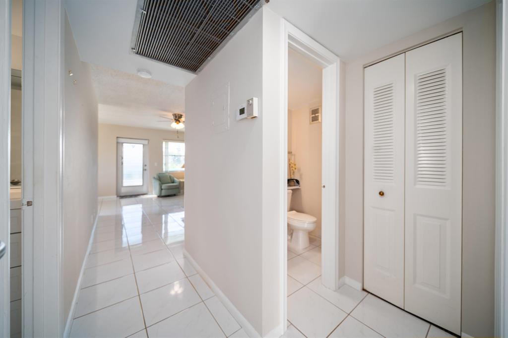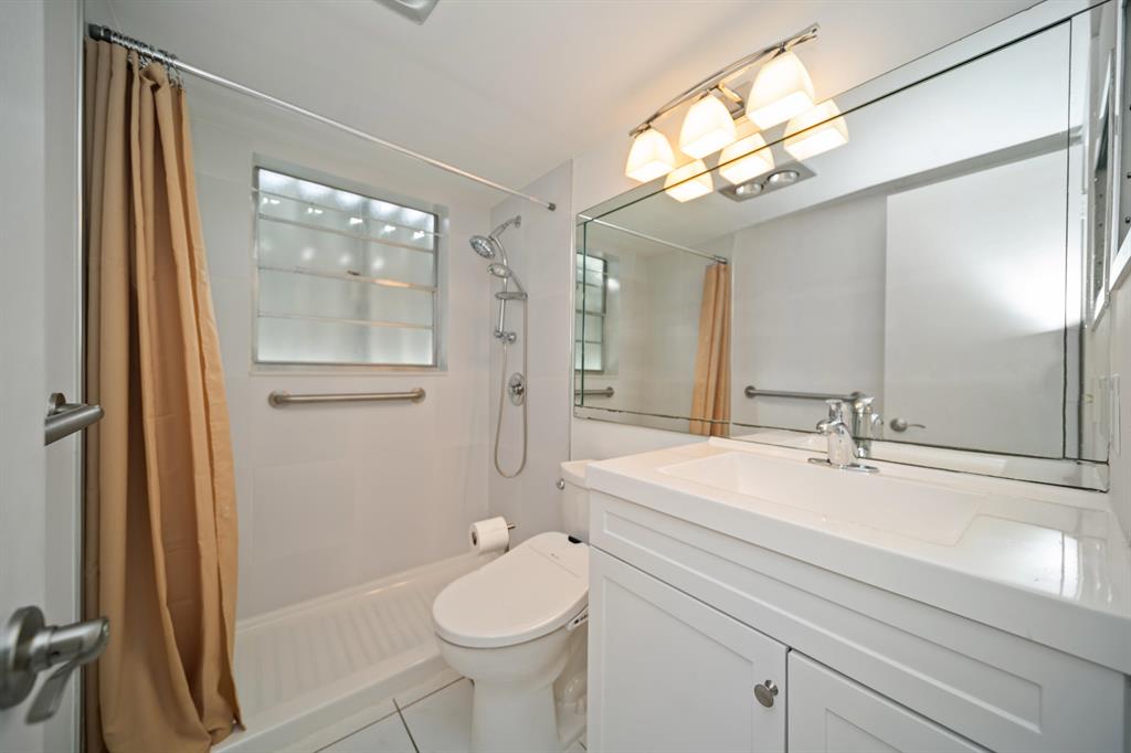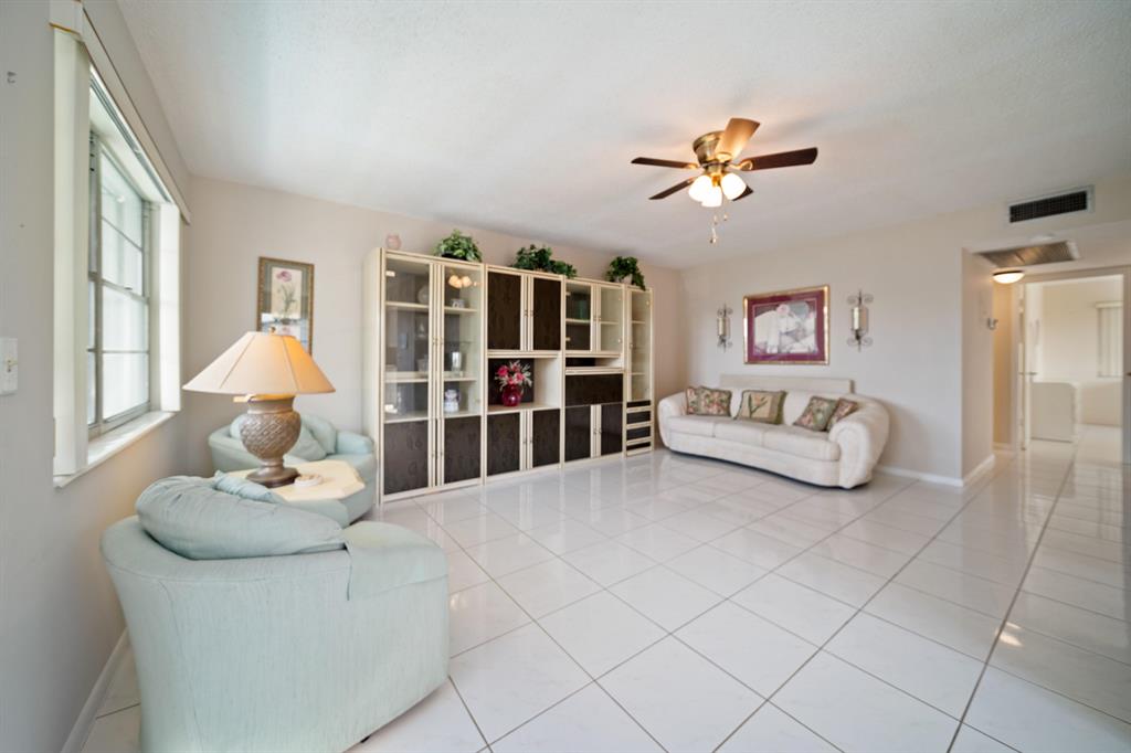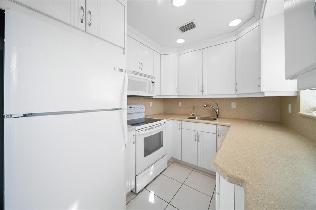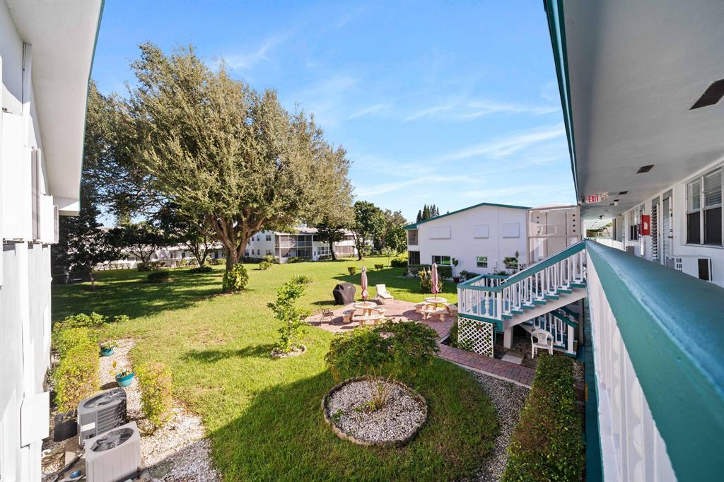 Sunshine abounds in this 2nd floor corner unit! This 2 bedroom unit overlooks a lovely patio with lush foliage. This remodeled unit boasts a custom kitchen with high hats, under cabinet lighting and Corian countertops. The full bath was remodeled with a walk in shower. Sparkling ceramic tile floors complete this outstanding property. This unit is equipped with a new hot water heater, newer AC and a water purifier. For your protection storm shutters complete this fantastic apartment. This building has a lift for all its residents.. Cats are allowed. You will enjoy the South Florida lifestyle with amenities such as a fully equipped fitness center, club house with over 1000 seat theater, free transportation, close proximity to PBI airport, shopping, beaches and many restaurants