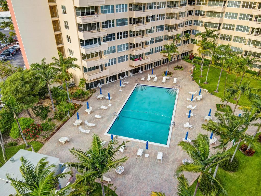 Great views of the Galt Ocean Mile, Ocean, A1A and beautiful sunrises. Minutes to the beach or Intracoastal. Clubhouse directly on the Intracoastal with common dock. Building is undergoing concrete restoration and will have incredible new balconies with glass panels, all old shutters have been removed and building is being painted! Windows and doors all High Impact Glass. Beautiful Turkish marble floors. Freshly painted. You can design your own kitchen to your tastes. There is enough marble to complete your kitchen floor. 55+ Community with great amenities, wonderful staff and great security. Restaurants, night life, shopping, EVERYTHING in walking distance! $8,700 Assessment Paid by Seller. Showings restricted from 10:00 am - 4:00 pm See video https://youtu.be/A03LDJQXjTw