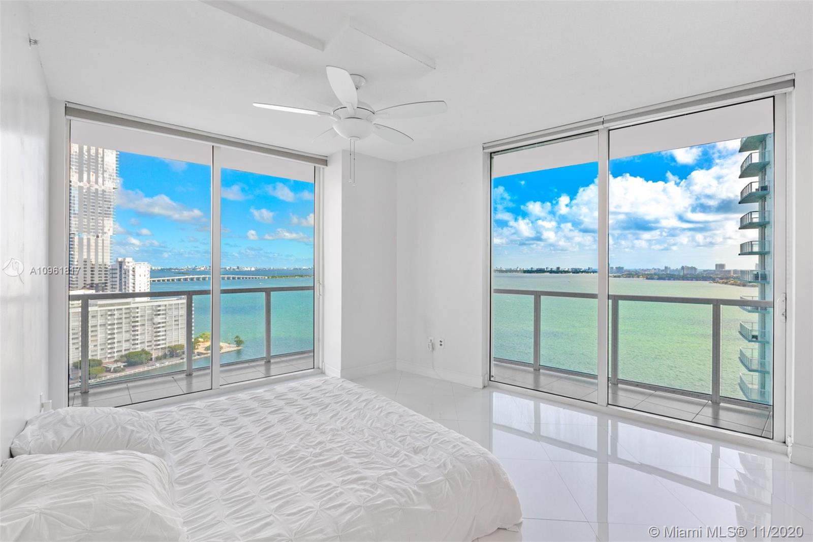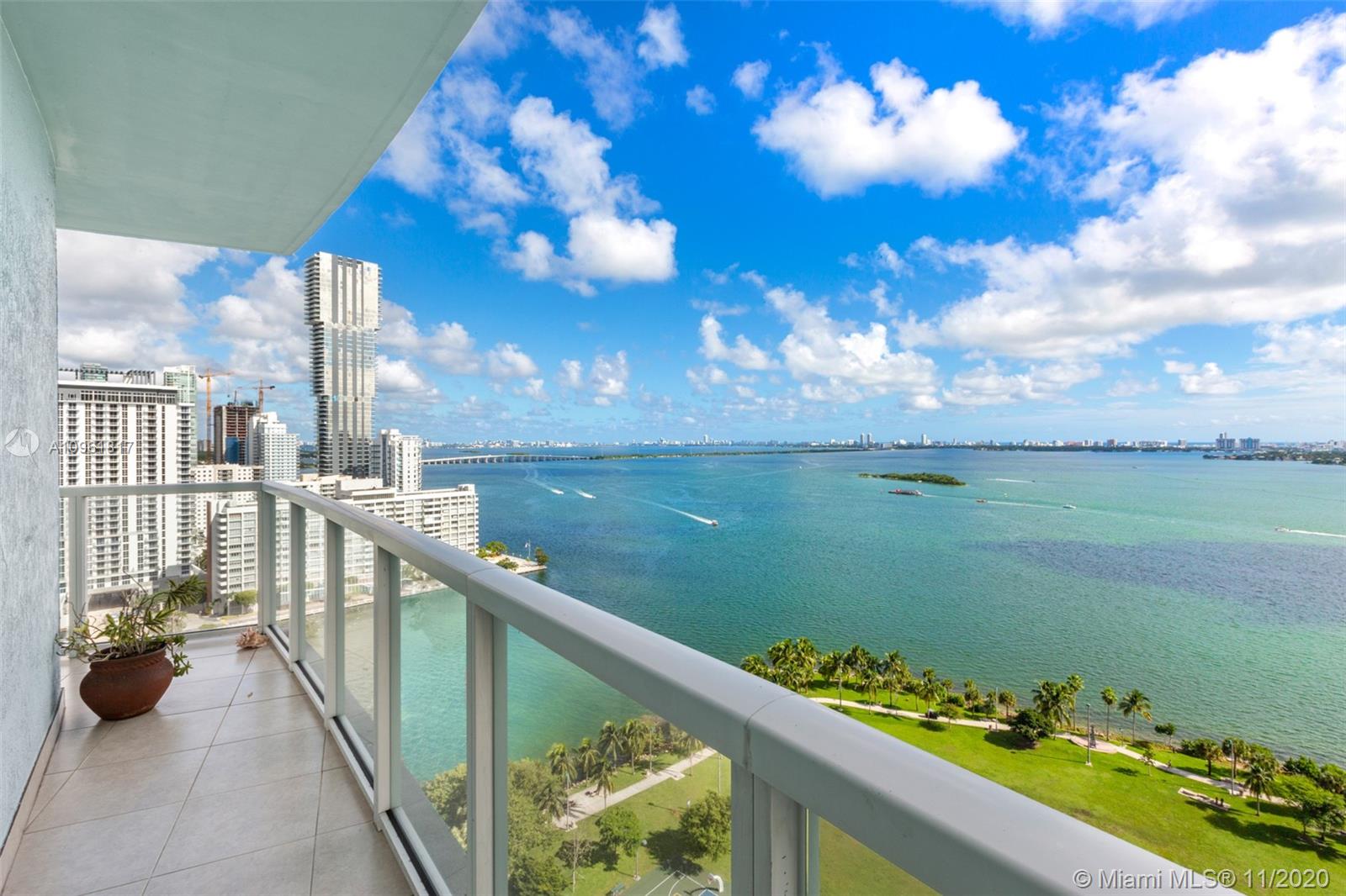 Bring your pickiest buyers to this immaculate 2 Bed/2.5 Bath + Den southeast corner unit in the beautiful Quantum on the Bay. Den can be enclosed for office or 3rd bedroom. Enjoy breathtaking, unobstructed views of Biscayne Bay from your wraparound balcony! Unit features white glass porcelain floors throughout, floor-to-ceiling impact windows, upgraded kitchen w/ brand new refrigerator. Building amenities include 2 heated pools, 2 story gym w/classes available, theater room, business center, party room, billiard, sauna, jacuzzi, valet, full concierge & 24-hour security. Great location! Adjacent to Margaret Pace Park, blocks from Downtown, Wynwood and Design District, minutes to Brickell and South Beach, easy access to 95. Don’t miss out!
