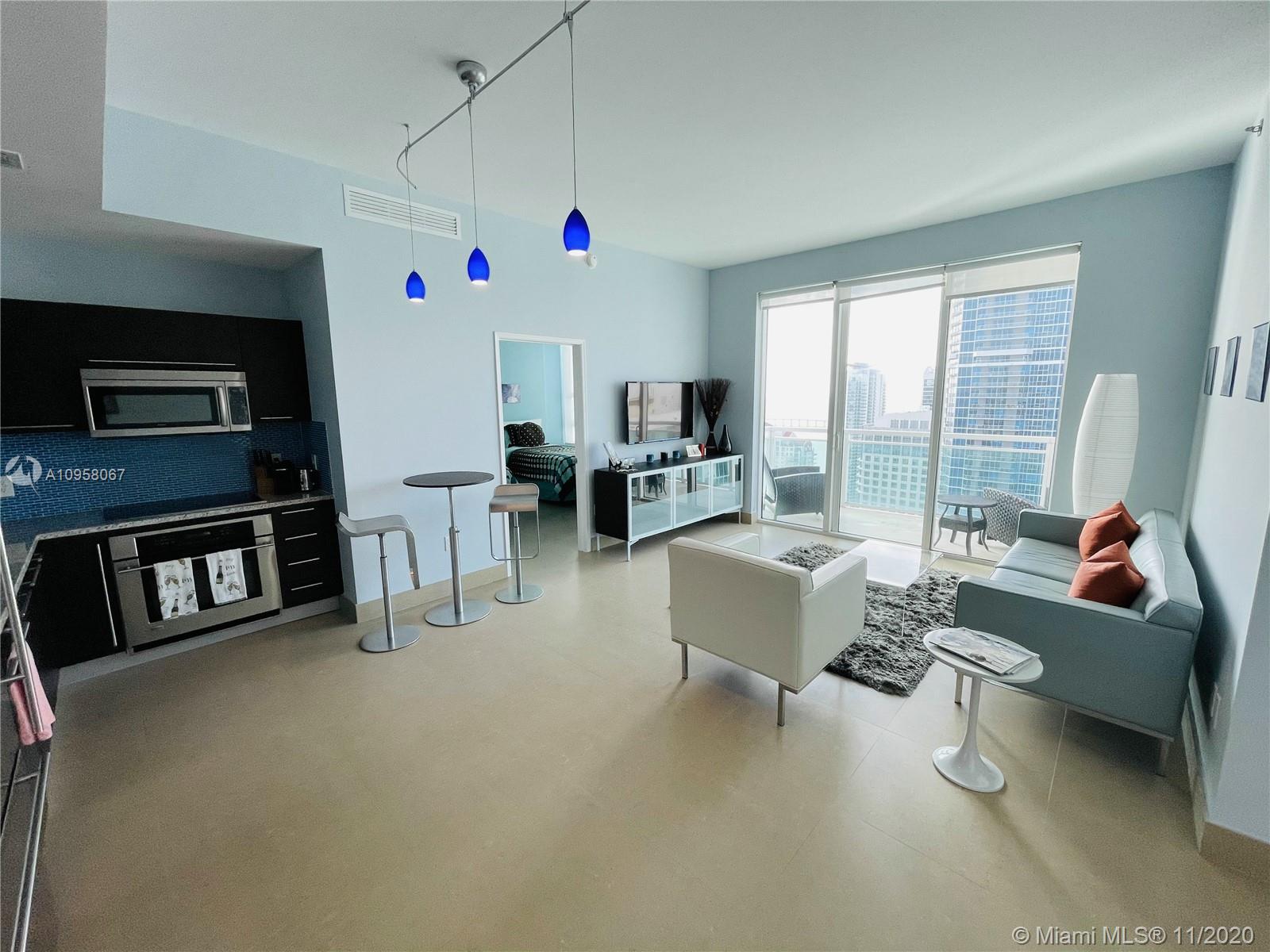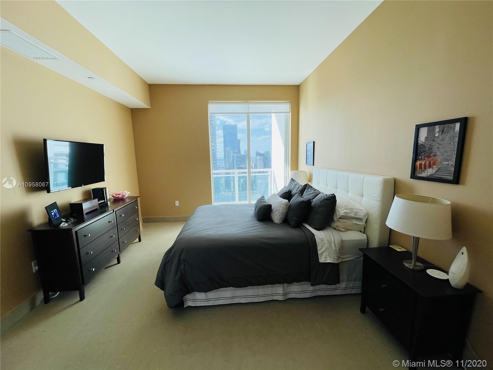 Spectacular 2 bed / 2 bath unit with amazing Biscayne Bay views and porcelain floors throughout . Residence features modern high ceilings, stainless steel appliances, imported Italian cabinetry Amenities: 24 hr security and concierge, 24-hour valet parking, State of the art Fitness Center in each tower, 2 Infinity-edge heated pools, Steam room, Theater room, Business center, party room, pool table & lounge. Walk to Mary Brickell Village and Brickell City Center mall. Minutes away from American Airlines Arena & Performing Arts. HOA includes Water, basic cable & internet.