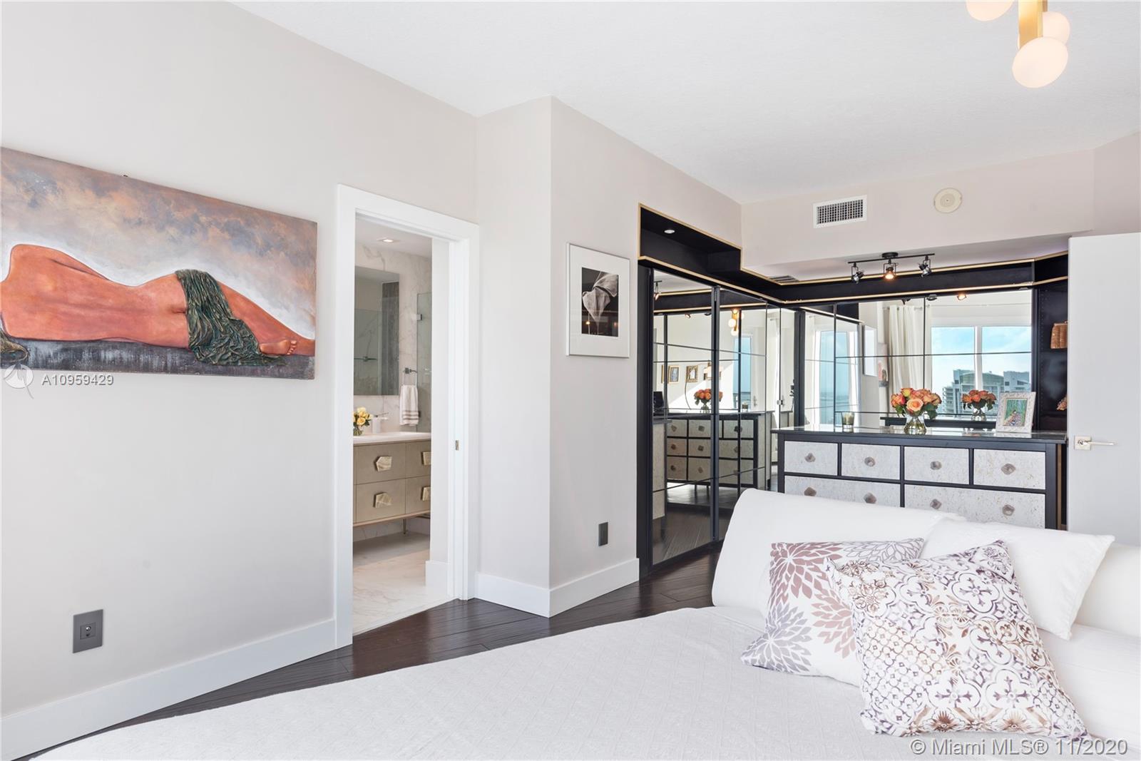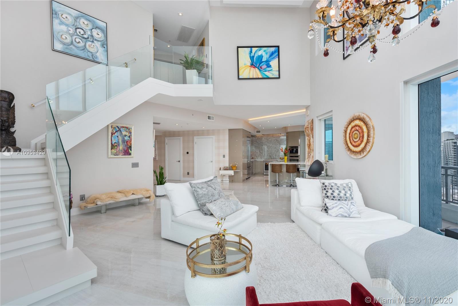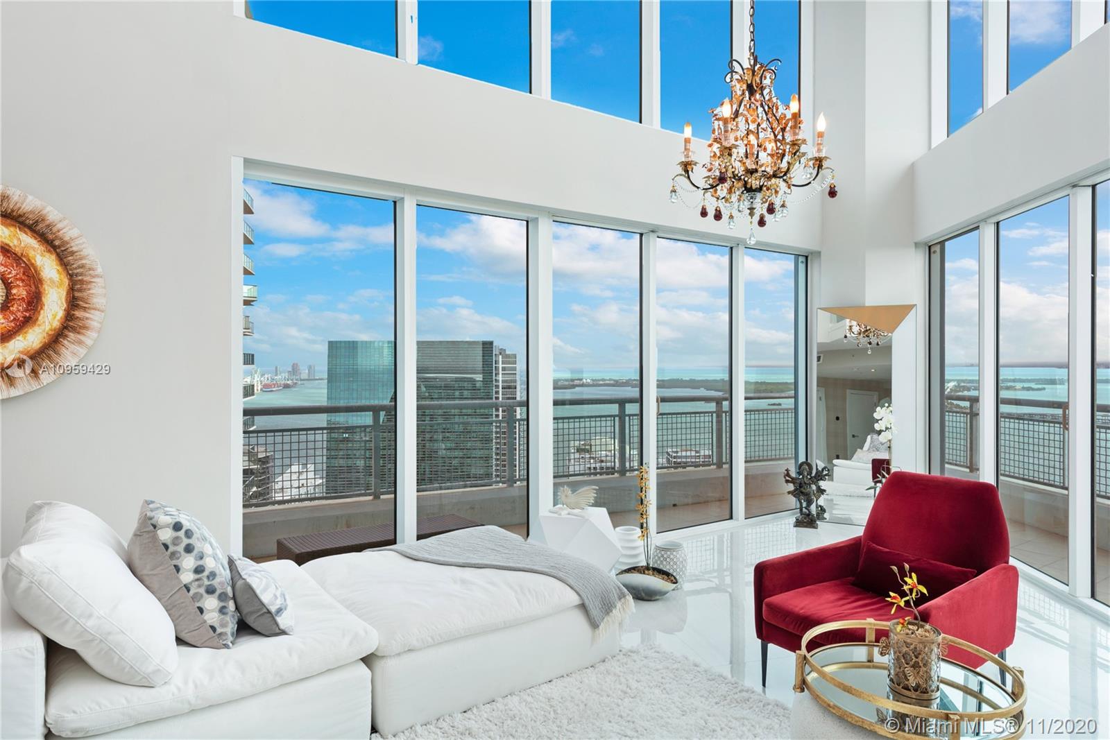 This striking and refined 2-level residence has been recently renovated with a stylish interior inspired by modern Italian Design. Its unconventional structure along with features such as a one-of-a-kind, classy, floating staircase illuminated by glowing LED lights, richly textures surfaces, and artful lighting paint the details of a life well lived. Elegant floor-to-ceiling windows and an open balcony make it easy to enjoy mesmerizing sunrise views over Biscayne Bay, green and Coconut Groves Marina complemented by sunsets over the historical Little Havana. Enjoy a relaxing Miami lifestyle with Infinity at Brickell's resort-syle amenities: spa/fitness center, infinity pool, poolside lounge, club room, roof terrace, onsite dining, and 24/hr concierge, doorman and valet parking.