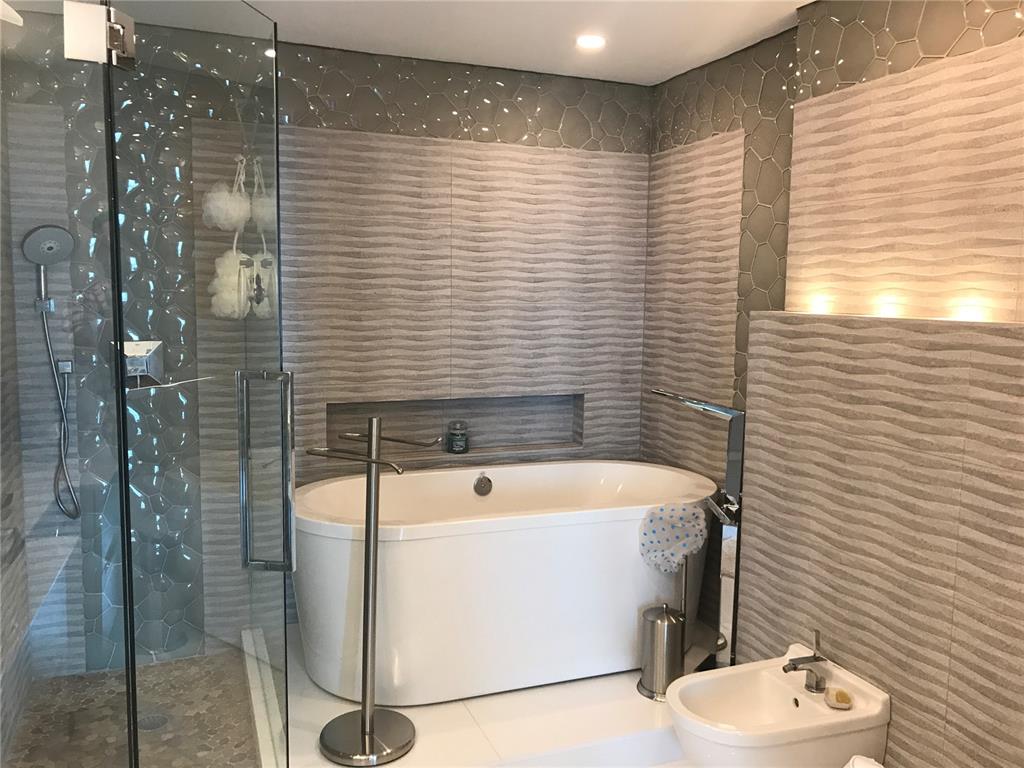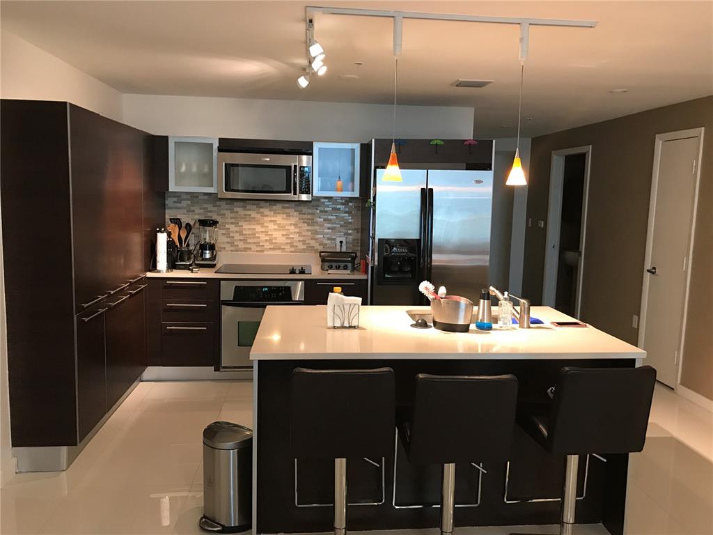 Well-kept 2 beds, + 1 den, 2 ½ baths corner residence with wraparound tiled balcony featuring exhilarating direct views of Biscayne Bay, breathtaking sunrises and city skyline. Master bath totally remodeled, glass tile, Toto toilet and Duravit bidet, separate roman tub, frameless glass shower enclosure, dual glass sinks, dimmable LED illumination, custom mirrors. European style kitchen with stainless steel appliances and new sink faucet. Custom lighted closets, frosted glass sliding door at den, New 2019 A/C Heat Unit. Porcelanato tile flooring. 1 assigned storage cage, 1 assigned parking space. Quantum on the Bay features a massive 2 story gym, spa, sauna, lockers, 2 heated pools, convenience store, 24 hrs lobby attendant, valet parking, security, and more. Across from Margaret Pace Park.