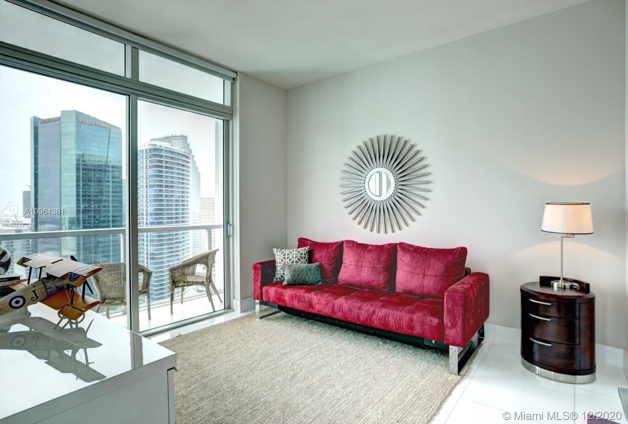Excellent location in Brickell. Pent House Corner Unit, Panoramic City, River and Bay views. Best split floor plan. Double Height ceilings. 2 Bedroom 2 Bathroom. Tile floor, large kitchen with quartz counter-tops & stainless steel appliances. Marble top and jacuzzi in bathroom, glass enclosed shower. Parking in the first floor garage. Beautiful amenities include 3 pools, spa & gym, club room, sports bar, roof top entertainment room, wine cellar, theater room. Just one block away from City Center and Downtown.