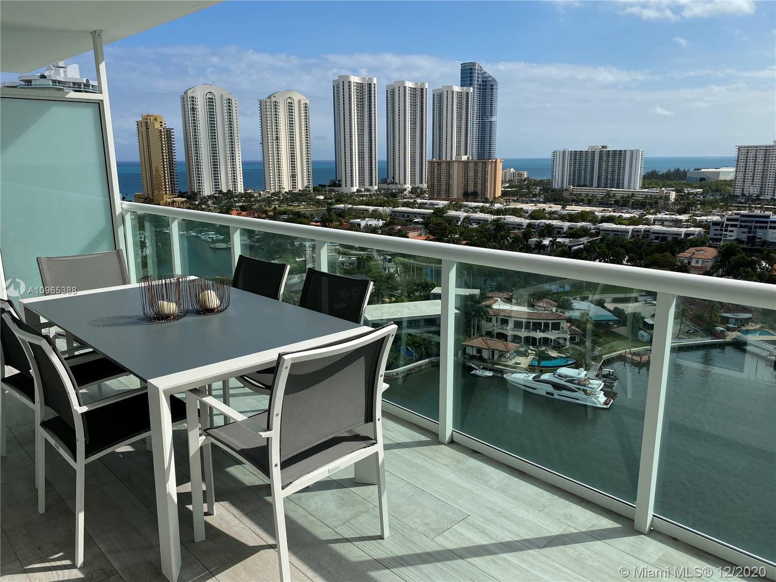 Amazing Opportunity at 400 Sunny Isles!! 2 stories, 2 Beds + DEN + 3 Full Baths, with amazing water views. This fully furnished luxury condo features a large master suite that takes the entire 2nd floor, built-in-closets, European Kitchen cabinets, and German appliances. Enjoy stunning views of the Intracoastal, Oleta National Park, and the Atlantic. Delight yourself in resort-like amenities that include bayfront lap and plunge pools, Spa & Fitness Center, tennis court, beach service, and more. The 400 Sunny Isles offers a full-service Marina and boat storage to all residents.