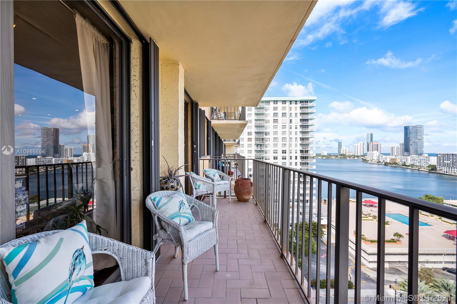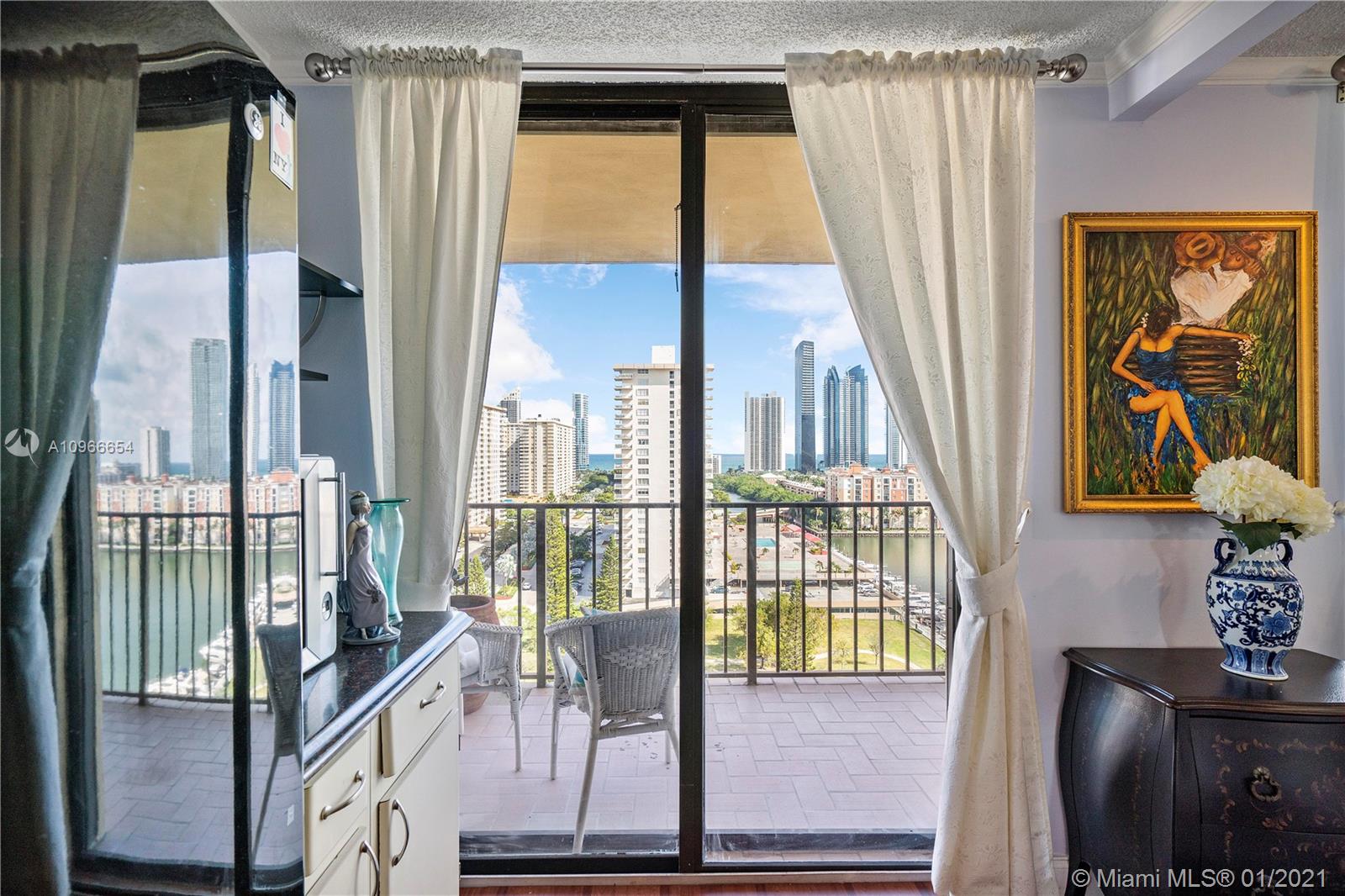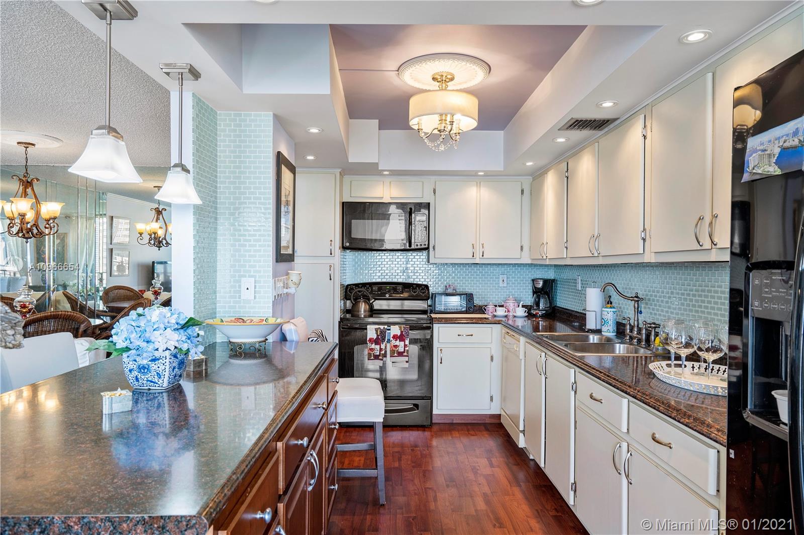 Beautiful 1/1.5 unit fully remodeled. Open kitchen. Renovated bathrooms. Spectacular view of the Ocean and wide city. Washer and dryer inside the unit. Located in the most luxury of Winston Towers, building offers many amenities such pool, gym, sauna, library, meeting room, game room, tennis court and many more. Walking distance to the Ocean. Apartment is actually larger than Tax Roll 1080 SqFt. Parking is deeded