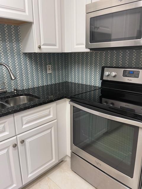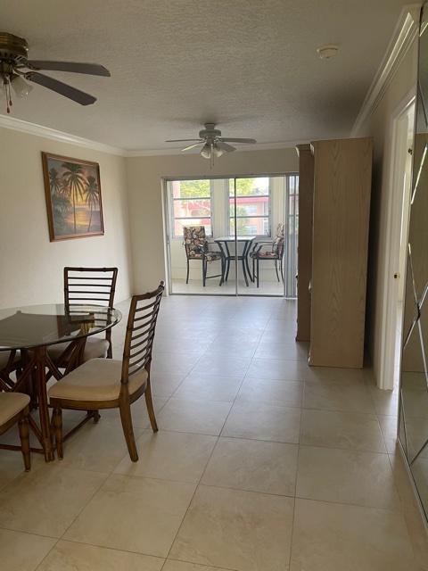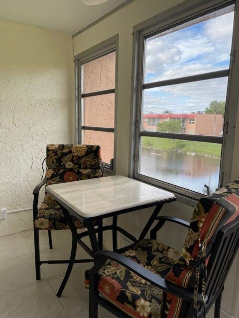 Sparkling clean 2nd floor 1/1.5 updated corner unit is ready for you to move right in. Ceramic tiled floors thru out, granite counter tops in kitchen and baths. New cabinets in kitchen and custom cabinets in master bath. Partially furnished, great views from porch and master bedroom. Super large pantry off the kitchen and plenty of room for a washer & dryer but laundry room is directly adjacent to unit. Peaceful and quiet end of canal views off porch and parking is directly in front of walkway. Front door is at the top of the steps. The clubhouse is one block over with a large heated pool, gym, game room and auditorium. Just minutes from shopping and highways not to mention close to the airport and beaches.