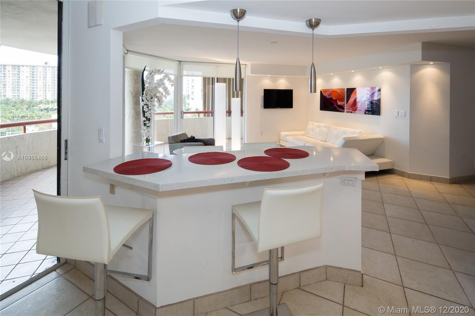Fully furnished gorgeous unit at the entrance of Sunny Isles Beach @ Tropicana - an oceanfront condominium, east of Collins Ave. Spacious 2/2 unit, with wrap-around balcony facing west and north, with partial ocean views. Fully upgraded and modernized, with hurricane-impact windows (and accordeon shutters). Open kitchen. Central AC. WD inside. Stainless-steel appliances. Quartz counters. Built-in closets. Secured property, with lobby attended. Condominium pool on the ocean-side, with direct beach access. 1 garage park. space. No pets as per HOA.