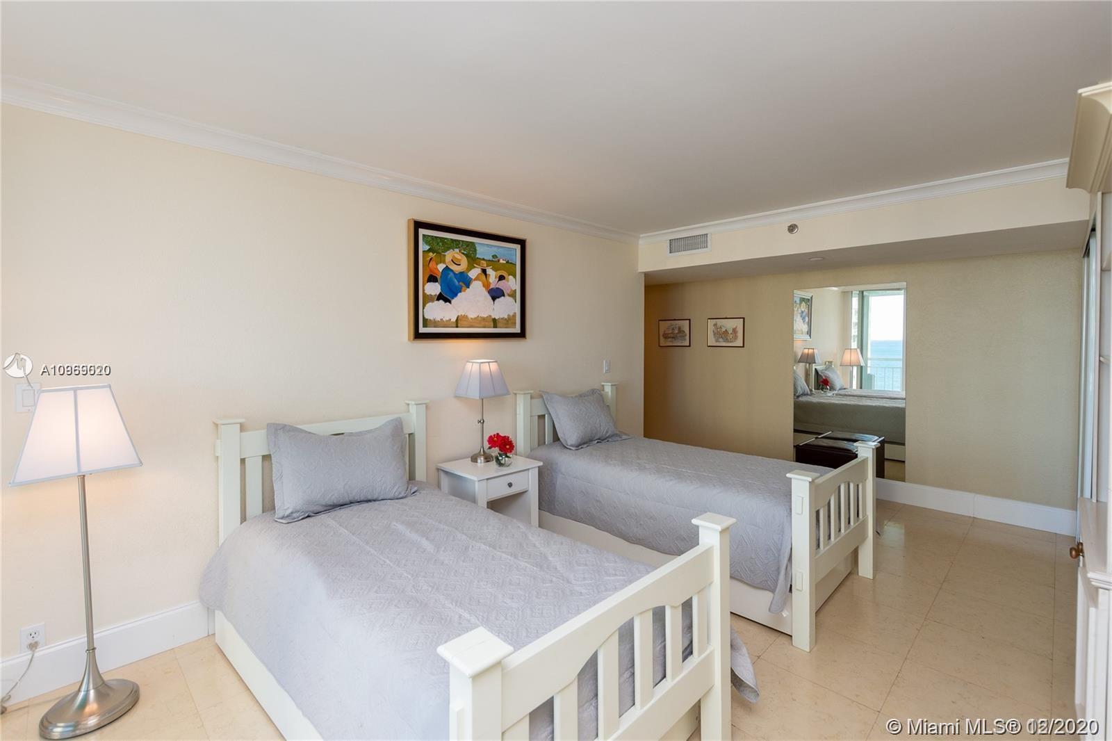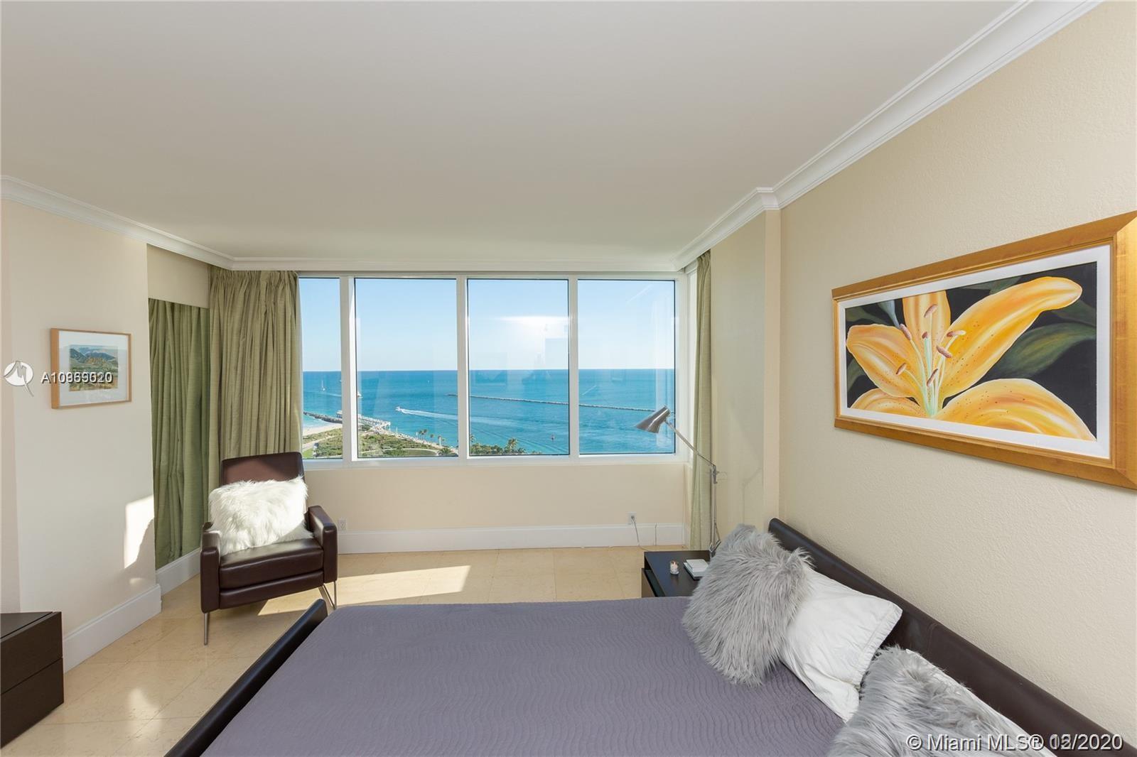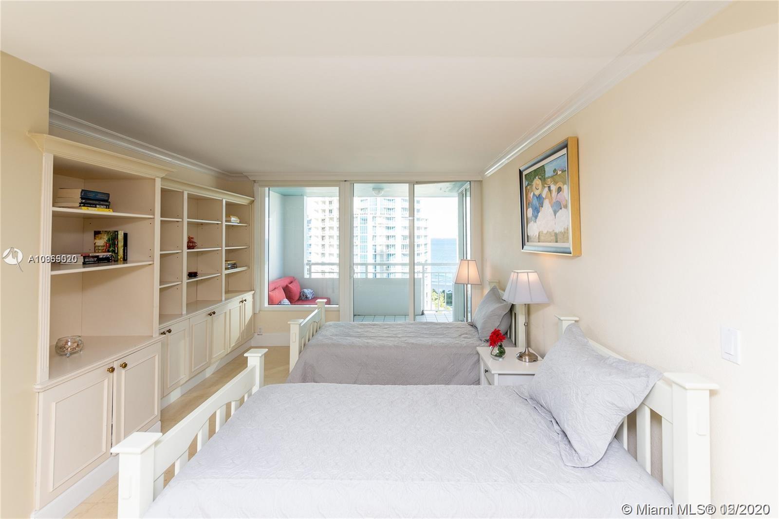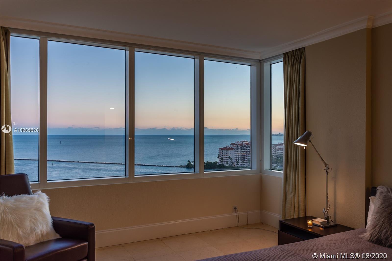 With views this breathtaking from every room, you’ll know why this 04 line rarely comes on the market! Be mesmerized by spectacular scenes of the ocean, bay, Miami Beach and Miami from this spacious home high in the sky! Relax on the wraparound balcony and be awed by both sunrise and sunset. Impact floor-to-ceiling windows make it all the more convenient to take in the beauty. Eat-in kitchen delightful now or ready for you to open into living and dining. Split bedrooms provide extra privacy. Updated Master bedroom-bath suite retreat features separate tub-vanity and large shower salons. Two guest rooms – one ensuite—share a balcony overlooking the ocean. Luxury, resort-style amenities with significant upgrades and renovations underway to make this desirable property even more exclusive!