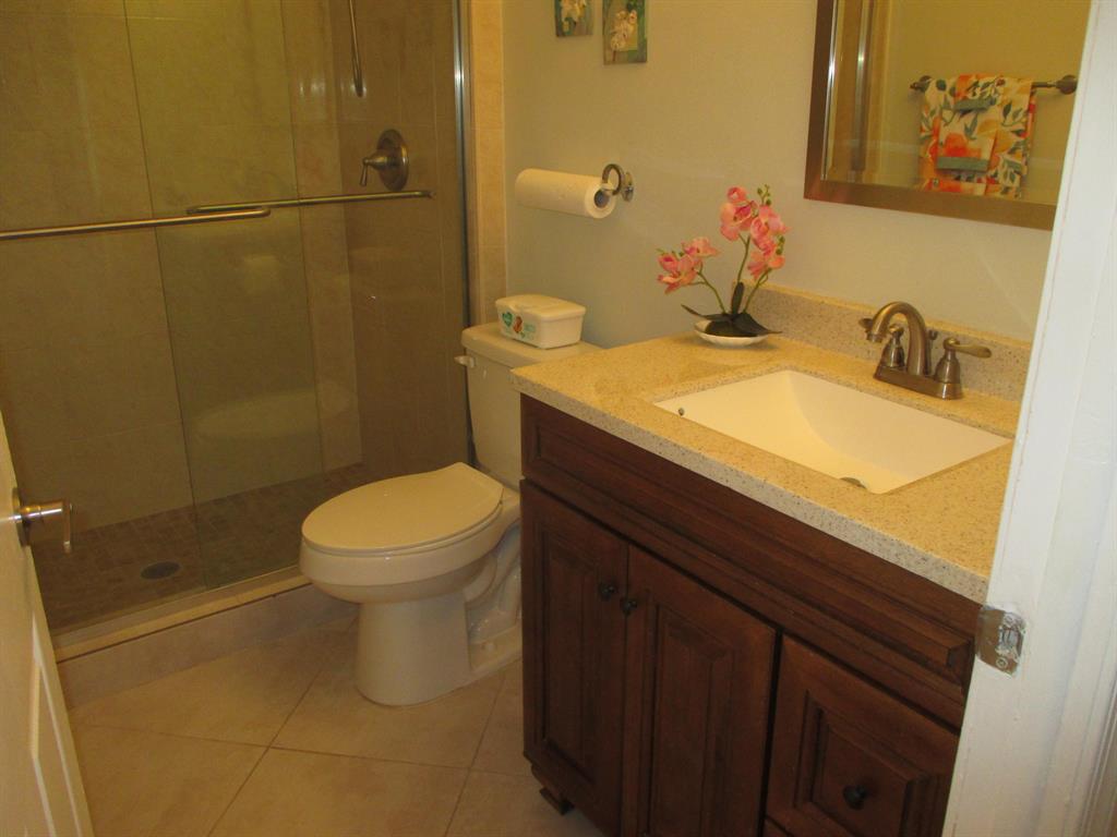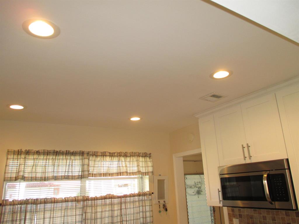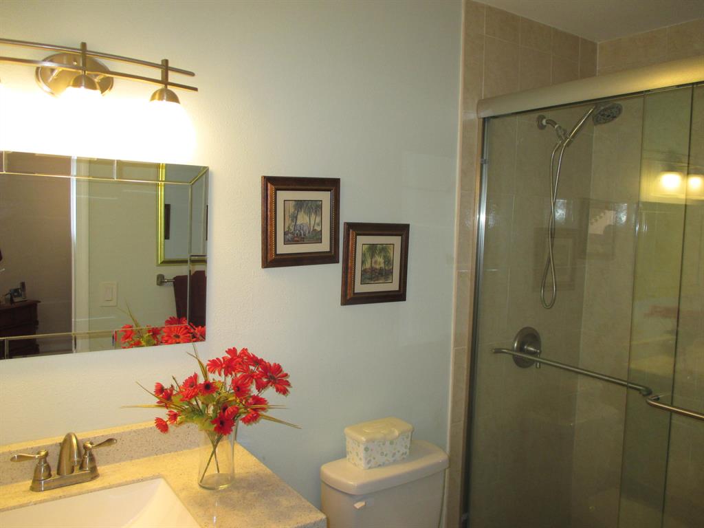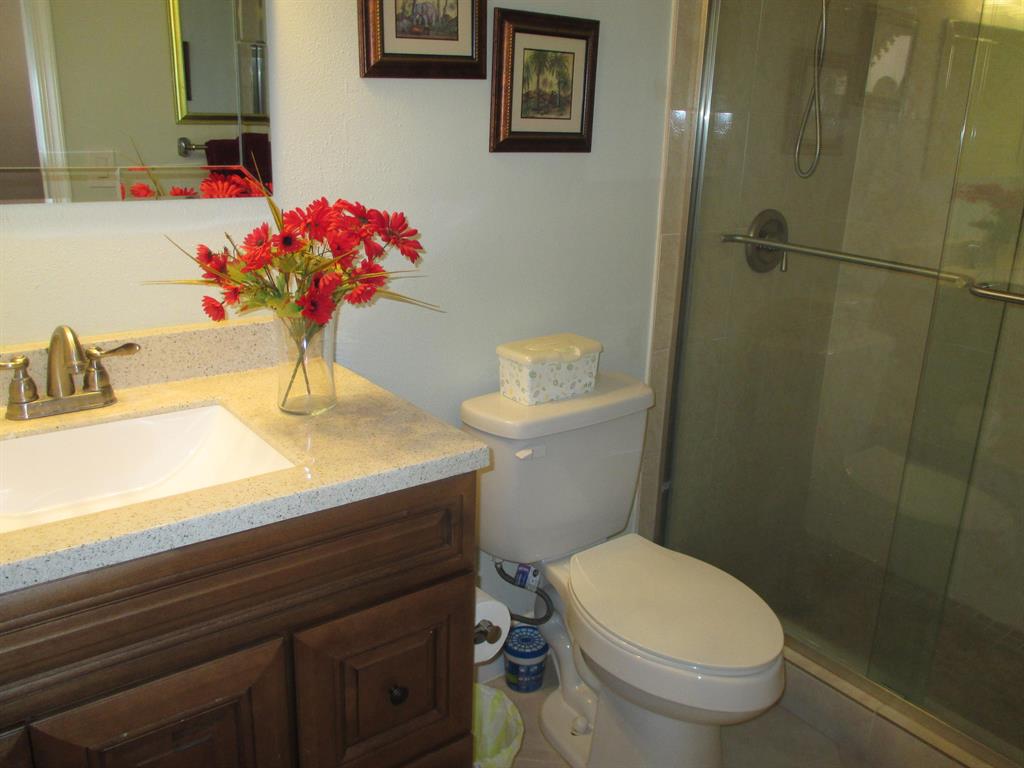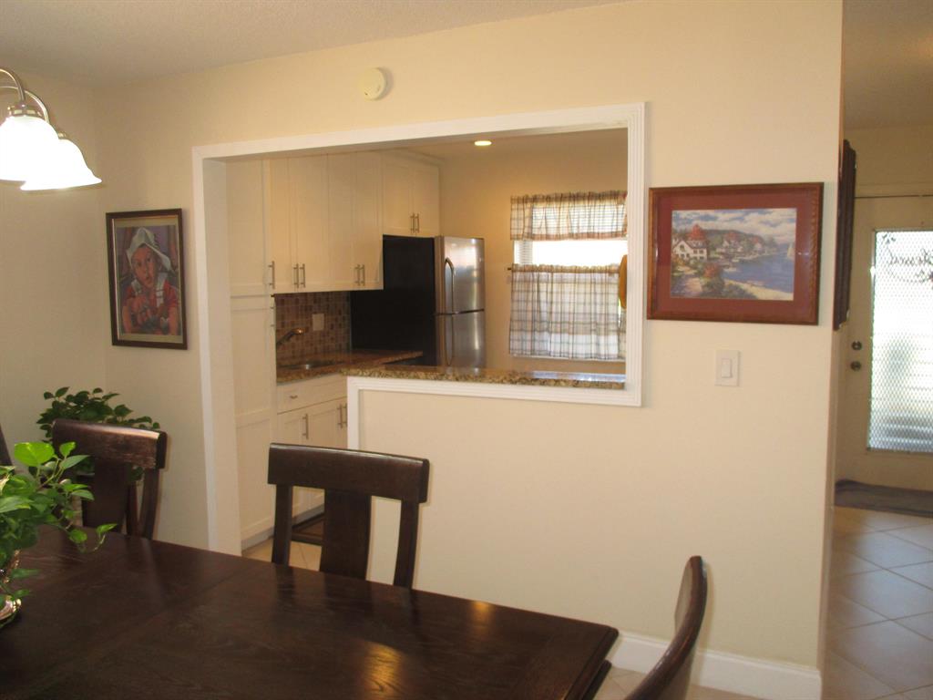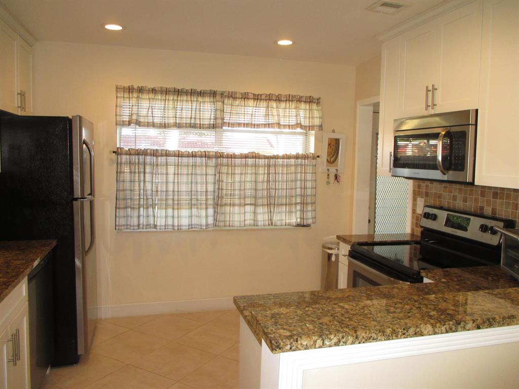 REMODELED Corner Villa. 2/2 with formal dining, all porcelain tile floors, knock down ceilings (no popcorn). Kitchen has 42'' cabinets with soft close & pull out drawers, corner lazy susan, granite counters, tiled backsplash, SS appliances, LED recessed lights. New H/W, newer A/C, both remodeled bathrooms have tiled walk-in showers. Full size washer/dryer. Two closets in Master Bedroom, one a walk-in. All new interior doors and hardware. New roof. Lots of updates. Remodeling done later part of 2017. Seller will leave furniture if buyer wants. Discover Golden Lakes Village. One occupant must be 55+. Two cats OK, and only service dogs allowed. Courtesy Bus two days a week to grocery, shops, malls etc. Full time social director, 24/7 guard gated.