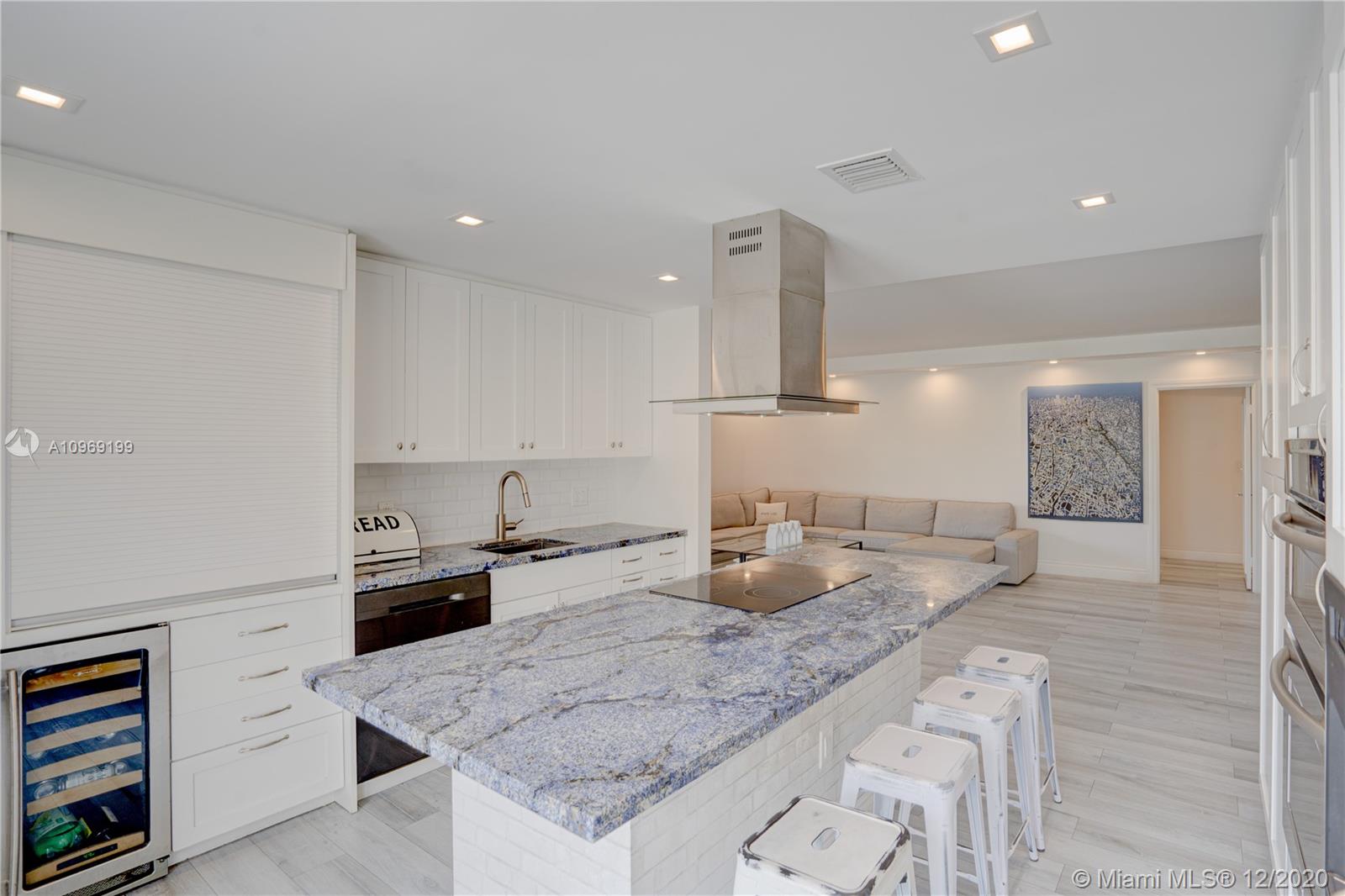 House in the sky! Beautiful & remodeled 3 bed/ 2 bath split floor-plan, 1,600 sf of living space + access to approx. 800 sf terrace w gorgeous sunset, sunrise and some ocean view! Lanai unit in the sky, 1 of only 2 units in the building with some ocean view. Island kitchen w access to the oversized terrace makes this residence perfect for families, entertaining, or anyone looking for private outdoor living space within condo living. 2 assigned parking + a storage unit. Key Colony is a 40 acre beach front & gated community w 12 tennis courts, several pools (including bch front), gym, playground, market w food delivery, salon/spa, & Bch front rest. (1 of only 4 buildings in Key Biscayne with bch front dining).