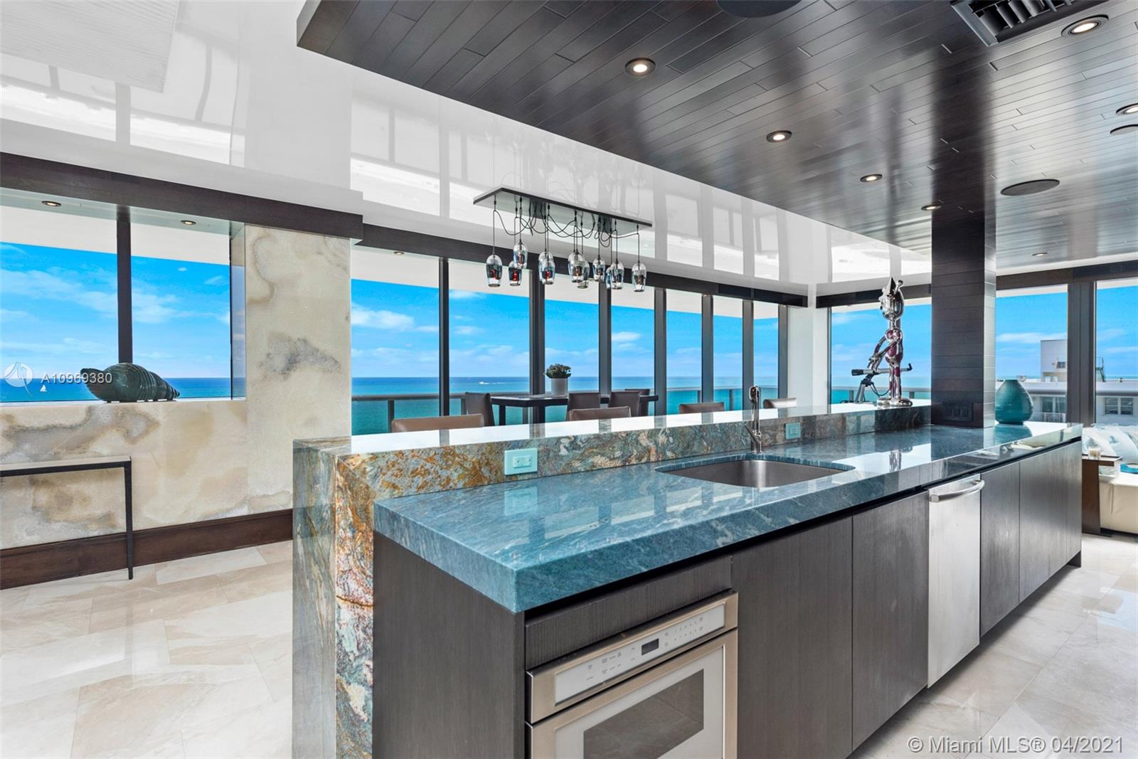 Newly priced turnkey residence at MEi Condominium. One-of-a-kind developer combination unit spanning 4500SF of indoor/outdoor living. Double corner, north-to-south flow through with nearly 100 linear feet of direct eastern exposure. Fully upgraded unit with expanded master suite, state-of-the-art kitchen and bar, and laundry room. Surround-sound Wisdom audio system with bonus sound-proof recording studio. Custom Sub Zero wine storage, built-in TV mirrors, Holly Hunt light fixtures and so much more. Designer furnishings package valued at $200,000. MEi is a full service, boutique condominium offering private beach service, fitness, sauna and valet. Located along prestigious Millionaire's Row away from hotel and tourist traffic.