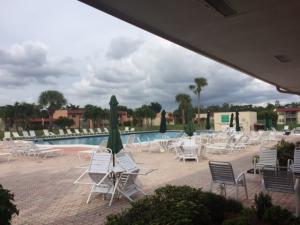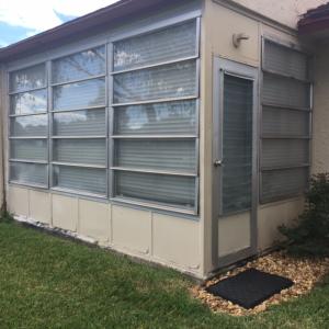 Wall inclosed 2/2 convertible villa on Lake Evelyn. Full size washer and dryer, ceramic tiles thru main floors. Crown molding, enclosed porch, updated shower in master bath. Custom built shelve, handicap ramp at entrance, small freezer on porch, 2 ceiling fans, custom mirrored dining area and drapes.