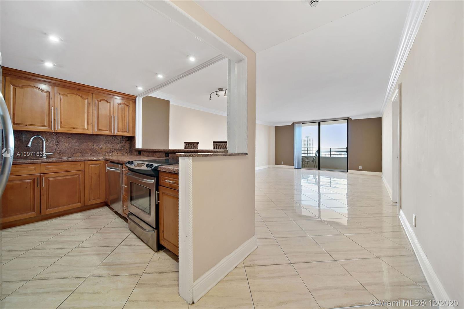 VIEWS! VIEWS! VIEWS! Nestled in the heart of Three Islands gated community, this bright and spacious gut renovated 1 Bed, 1.5 Bath condo in the sky boasts unparalleled panoramic ocean and intracoastal views.Eastern exposure allows you to enjoy your mornings overlooking breathtaking sunrises over the ocean. Granite countertops in Kitchen and Bathrooms, stainless steel appliances with solid wood cabinetry and a kitchen bar top for easy entertaining. Crown and base moldings throughout the unit with tiled floors including the balcony. Abundant storage including a Custom california walk-in closet The Olympus offers resort style amenities. Minutes to the Ocean, Shopping, Restaurants, Gulfstream Park & Casino and Aventura Mall. Storage included. Investors welcome - Rentals are ok!