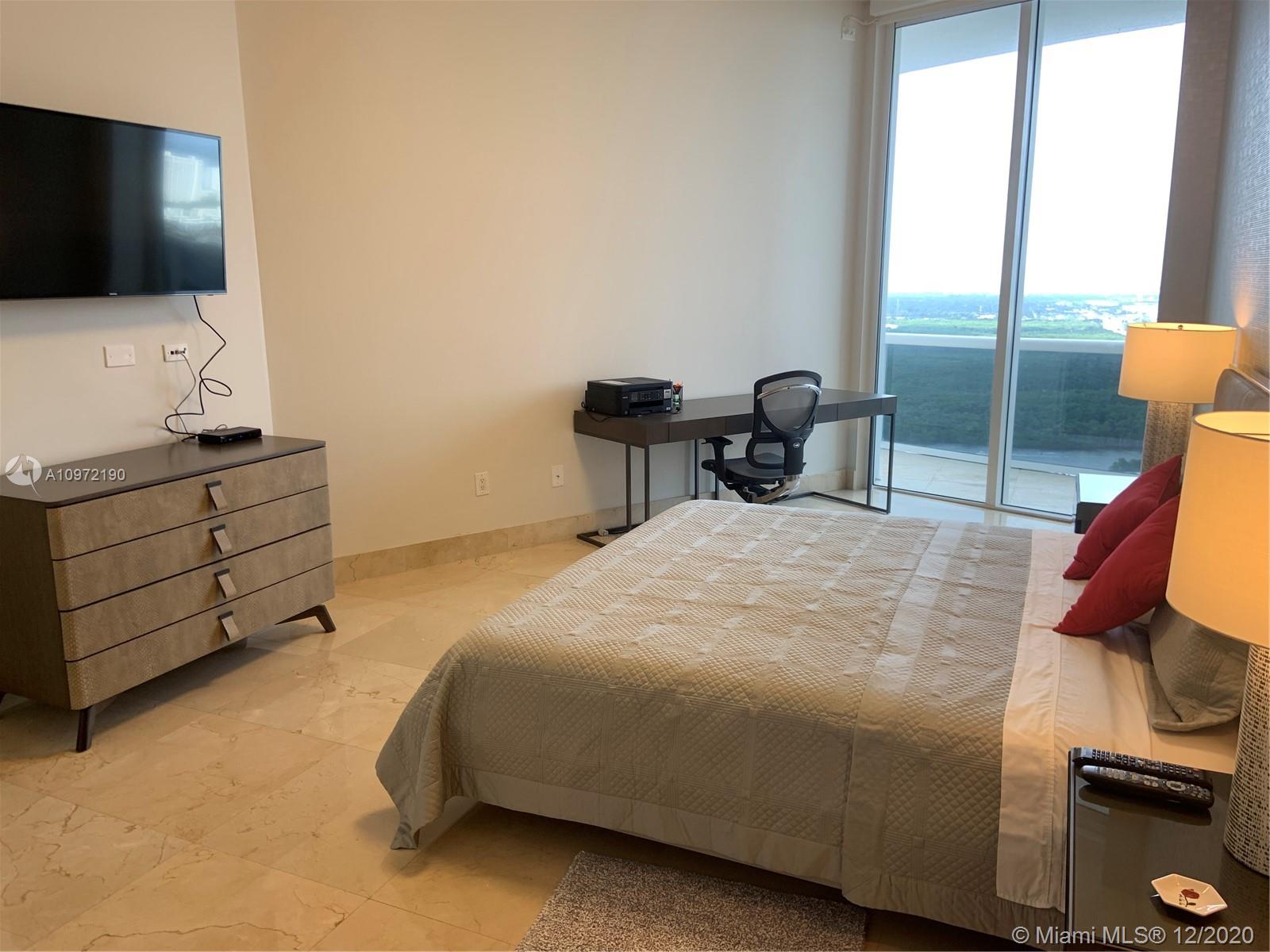 Amazing 11” height Ceilings unit on the 41st floor of the Trump Tower I. Watch the sunset every day in unobstructed and breathtaking view of intercoastal and Miami Skyline. 2bed/2bath turn key unit ( fully furnished), Floor to ceiling windows, 450 sqft balcony with access from all rooms, electric shades, marble floor, top of the line Bosch appliances. Building offer world class amenities as Beach lounge chairs and umbrella service, Fitness Center, Sauna, Business Center, Swimming heated swimming Pool and Play room. Full time concierge, 24/7 Valet.
