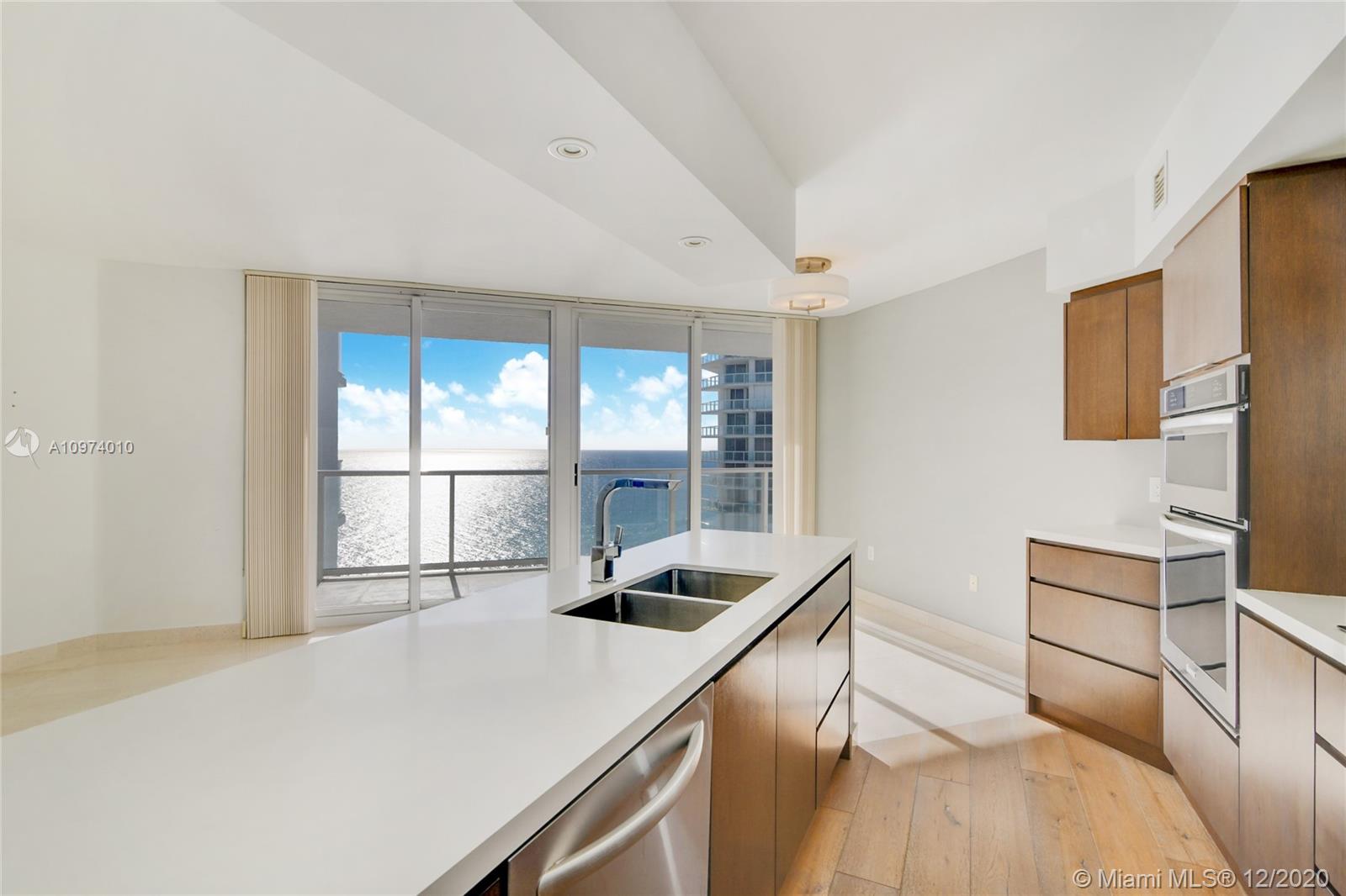 Move right in to this completely remodeled 1 bedroom/1.5 bath unit. The open kitchen, complete with a top-of-line stainless steel appliance package and quartz countertops, maximizes the incredible oceanview. Master bathroom boasts double sinks, marble counters, jacuzzi tub, frameless shower door, chrome fixtures and a porcelain tile floor. Guest bathroom also updated with modern, wall mounted sink and matching toilet. Full size washer and dryer in unit. Open, specious balcony with complete accordion hurricane shutter protection.