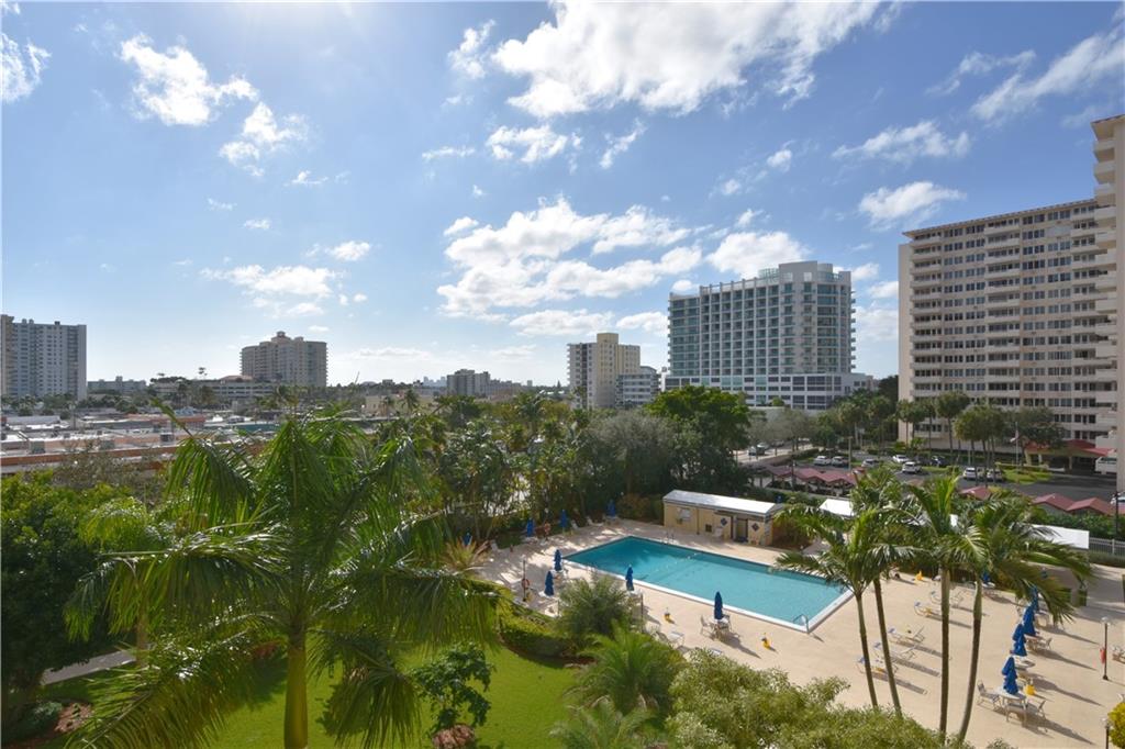 BRIGHT, SPACIOUS OVERLOOKING THE POOL..OUTSTANDING VIEWS OF CITY OF FORT LAUDERDALE AND WESTERN SUBERBS.COMPLETELY REMODELED, OPEN KITCHEN, GRANITE COUNTERTOPS, HI END STAINLESS APPLIANCES.. IMPACT WINDOWS WITH CUSTOM PLANTATION SHUTTERS THROUGHOUT. TANKLESS HOT WATER HEATER,. WOOD LAMINATE FLOORING. LARGE BRIGHT BEDROOM WILL ACCOMMODATE KING SIZE BED. HUGE WALK IN CLOSETS PLUS PLUS PLUS.. THIS UNIT IS SPOTLESS AND IS IN MOVE IN CONDITION. MONTHLY FEE: $619.00,INCLUDES: MAINTENANCE, CABLE TV, TAXES AND RESERVES.. VERY FINANCIALLY SECURE BUILDING WITH AMPLE RESERVES.. VERY CENTRAL LOCATION ONE BLOCK FROM BEACH, SHOPPING, RESTAURANTS AND EVERYTHING YOU WOULD NEED.