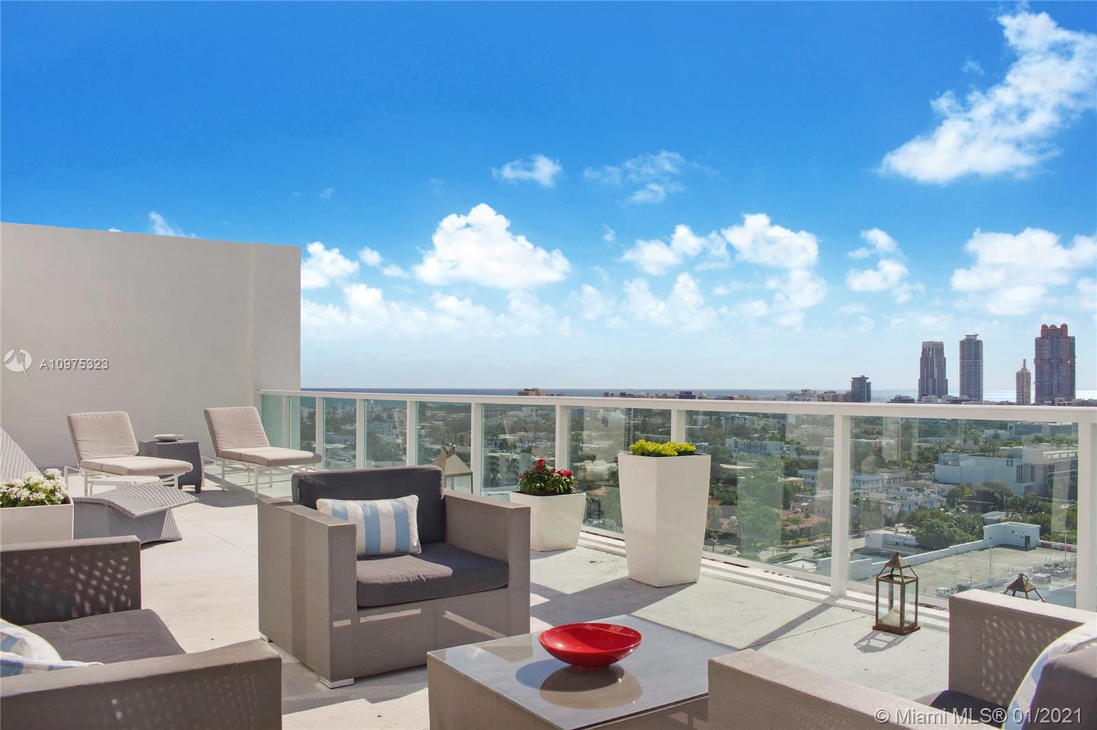 YOUR Home in the Sky. A STUNNING and UNIQUE Unit 3BR/2.5BA Tower Level Suite Unit with over 1600sf outdoor living space on So. Beach. 2,096sf of Lavish Interior space with 2 Amazing Wrap-Around Terraces -Spectacular Water and Skyline Views. PRIVACY: Only 8 units on the Tower Suite Level. Fully Renovated, Hurricane Impact Windows & Doors, Designer Bathrooms, Spacious Kitchen, Plenty of Storage and Closets and Marble Floors Throughout. Maintenance Includes: Hot Water, Garbage Removal, Cable, Internet, 5000+sf Fitness Center and Sauna. Walk to Wholefoods, Walgreens, Restaurants, Lincoln Rd. Within 15 minutes of Miami Intl. Airport, Wynwood, Design District, Downtown Miami, Museums, Entertainment and Arts District. Be AMAZED, Schedule A Showing Today.