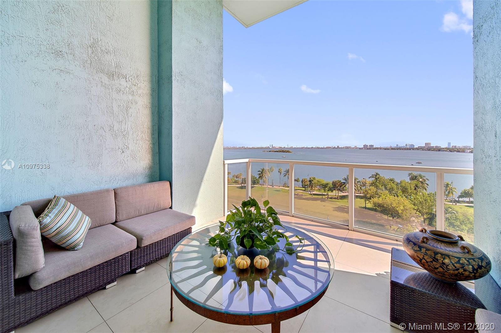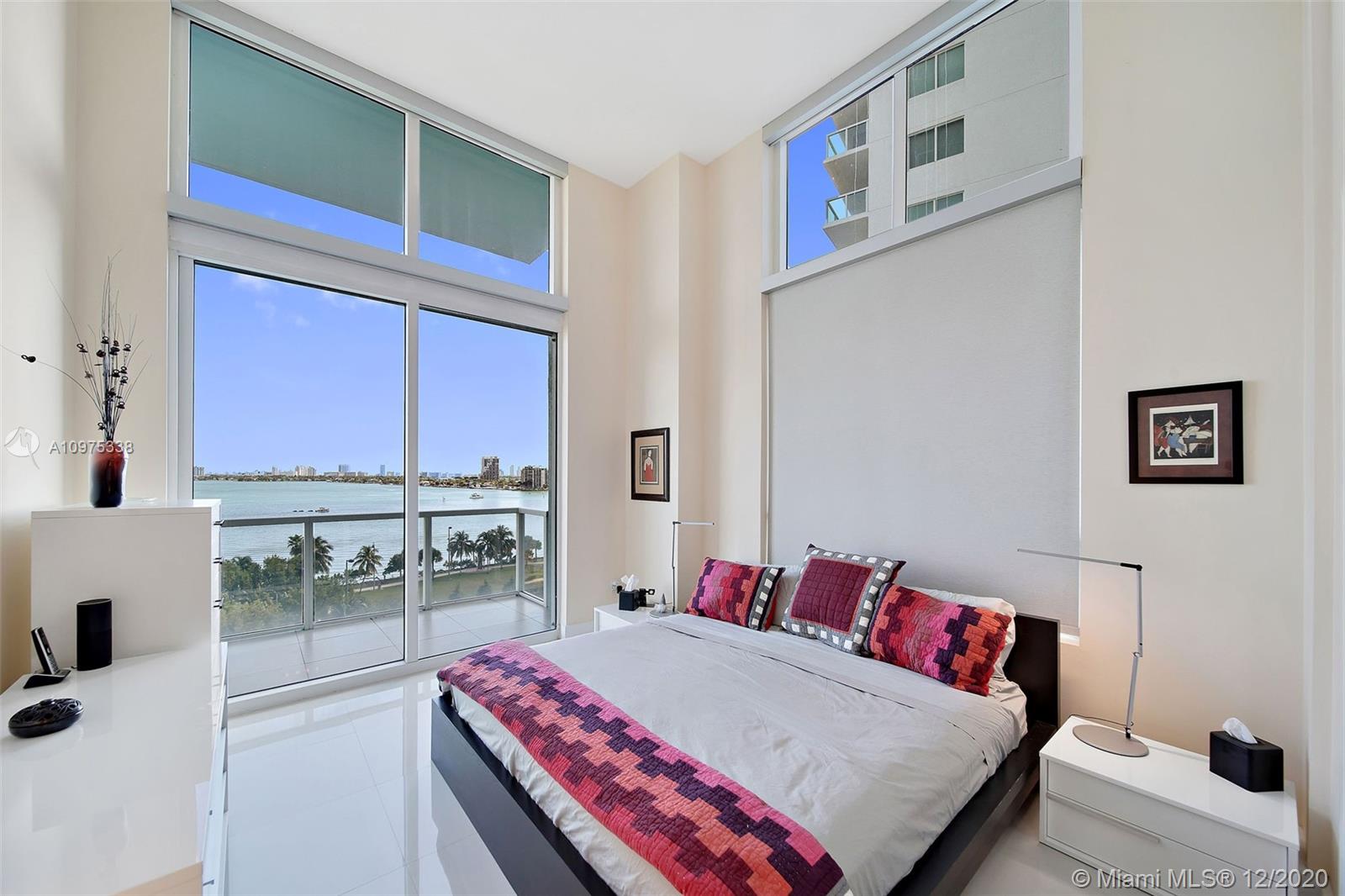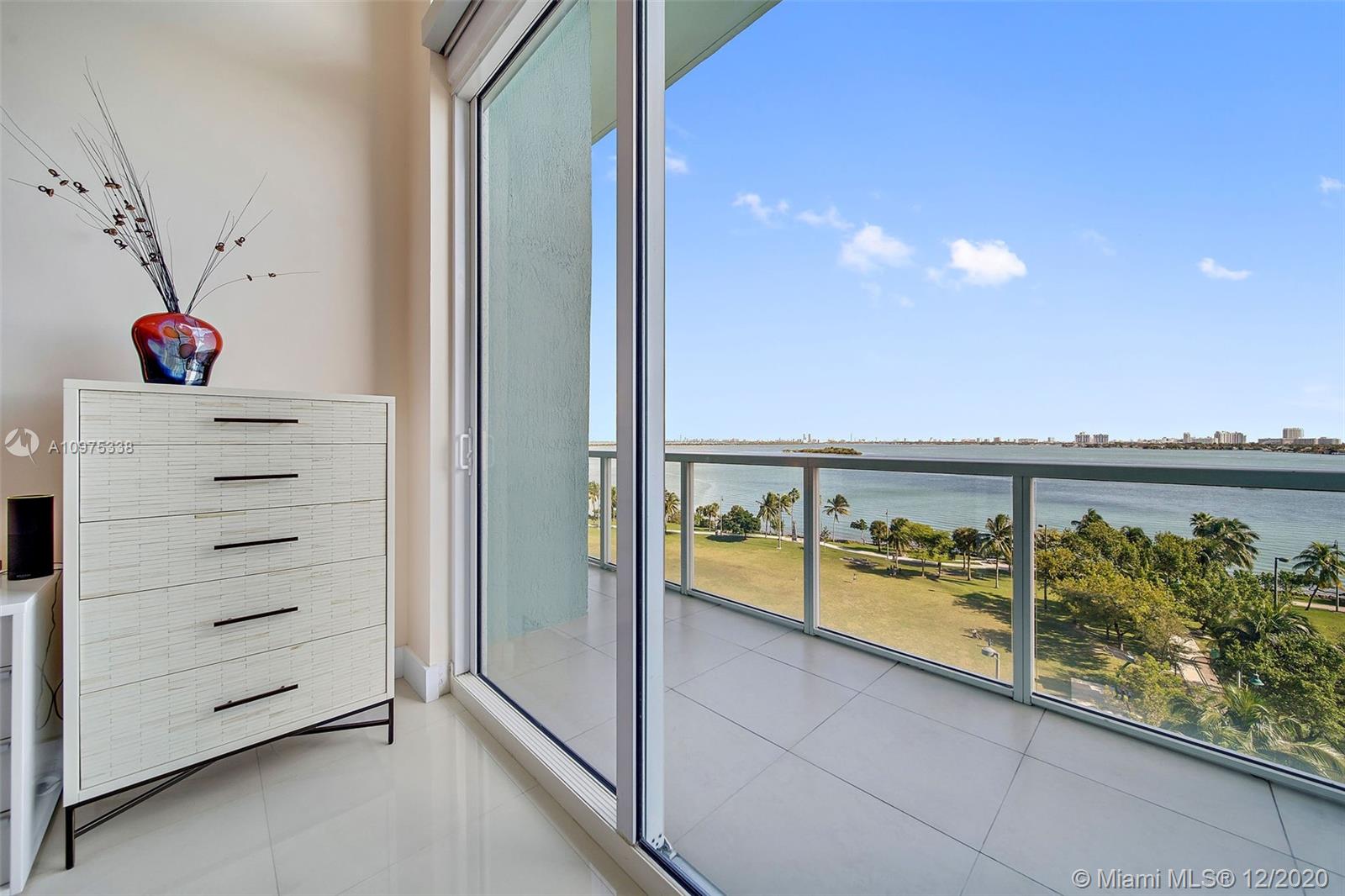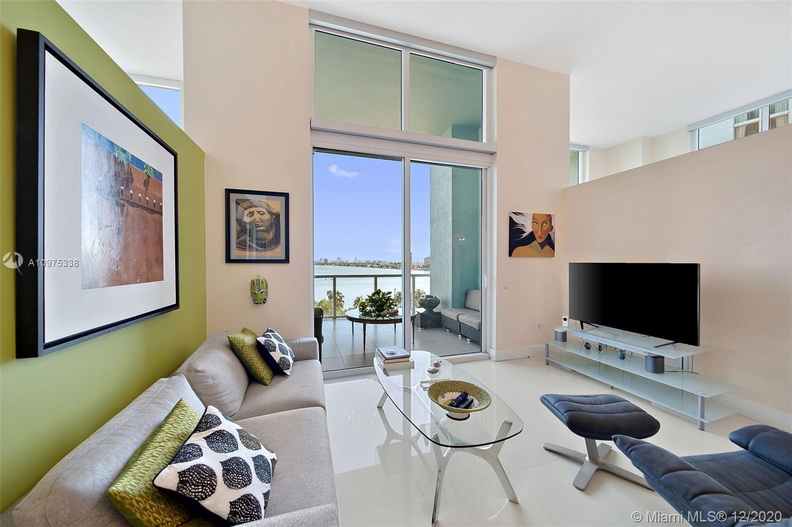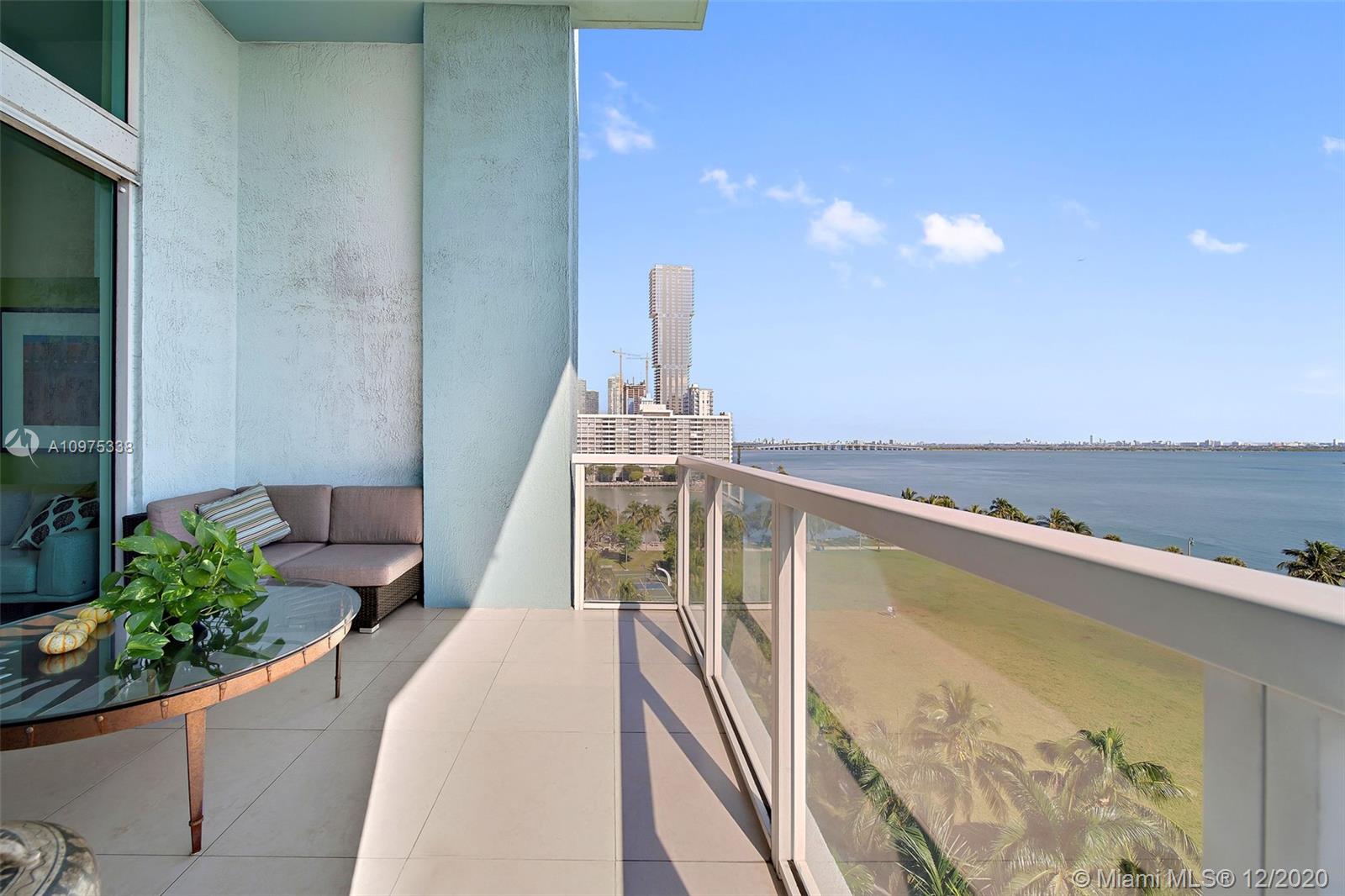 Gorgeous shimmering unobstructed and truly outstanding direct bay views from this rare coveted loft style residence with soaring 13 FT ceilings at Quantum on the Bay. Watch beautiful sunrises and sailboats while you sip your morning coffee on your oversized balcony. Spacious open floor plan with 2 bedrooms plus den, guest bathroom, porcelain tile flooring, oversized impact glass windows with electric shades, custom built in cabinetry and walk-in closets. Parking convenient to direct floor level. Full service secure building with fully equipped fitness center, billiard room, 2 pools and cyber library. This unit overlooks the 8 acre Margaret Pace Park on the bay in Edgewater. Fabulous location, walk to many shops and restaurants nearby including Publix, museums and more.