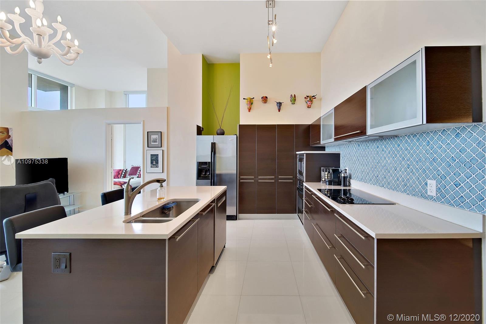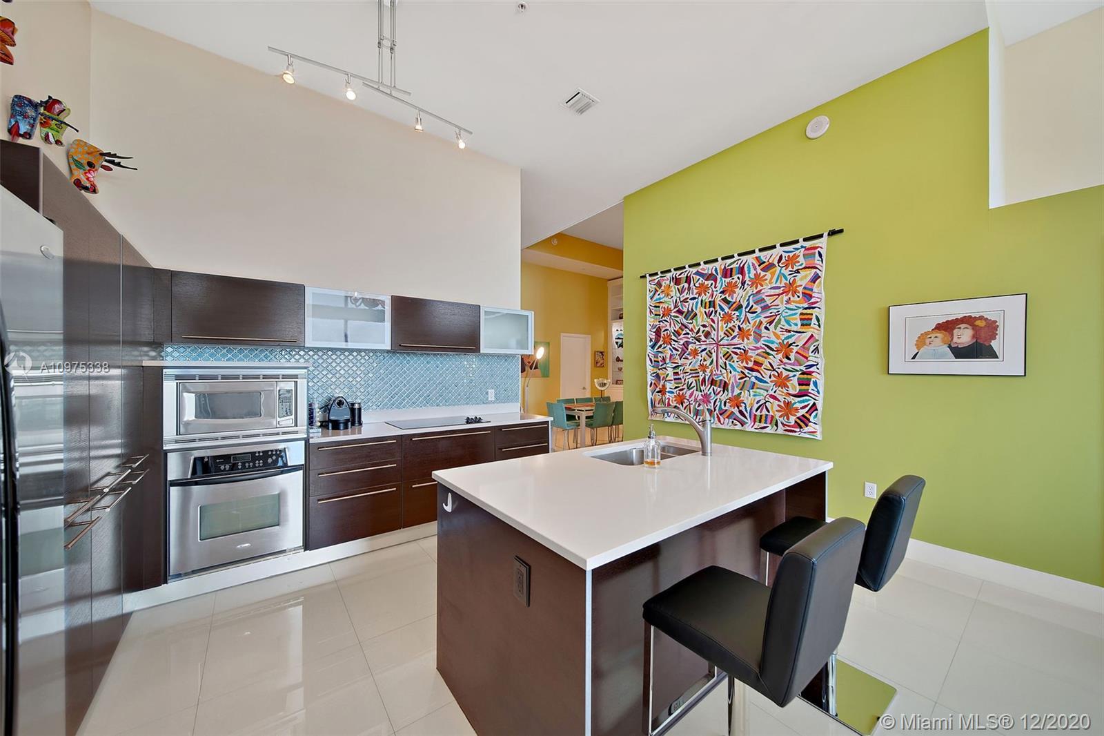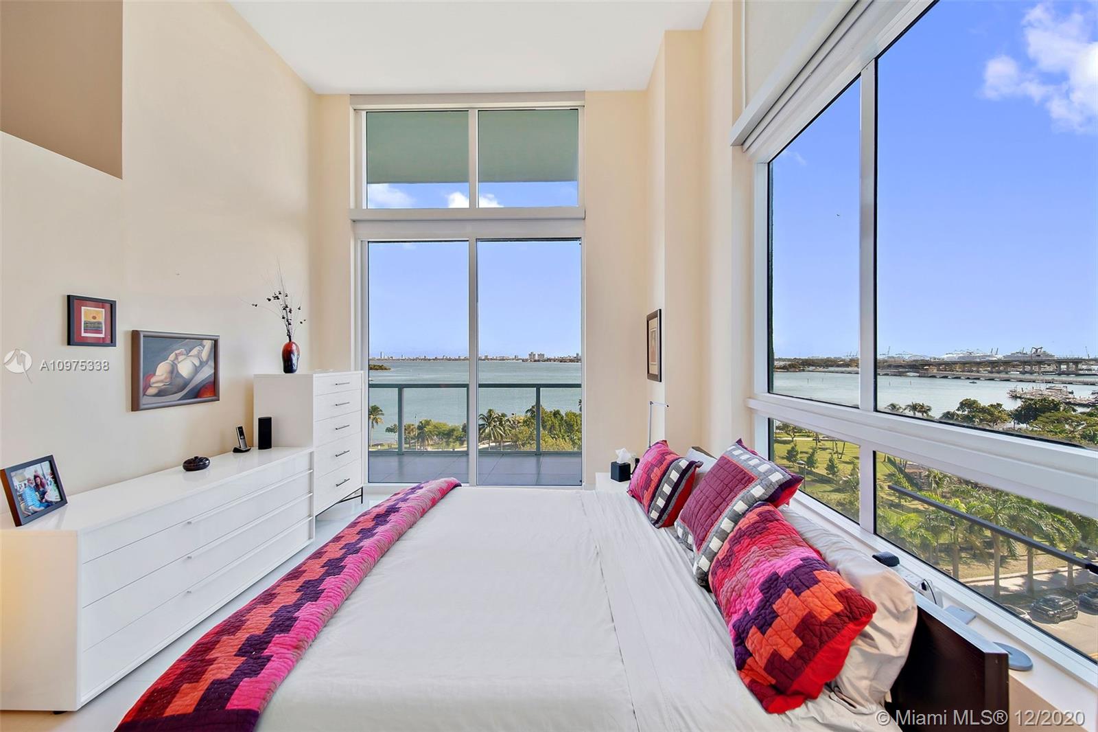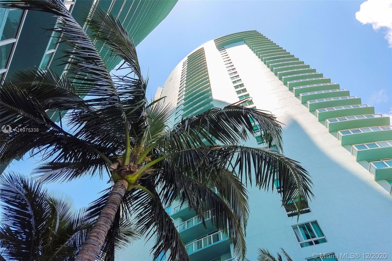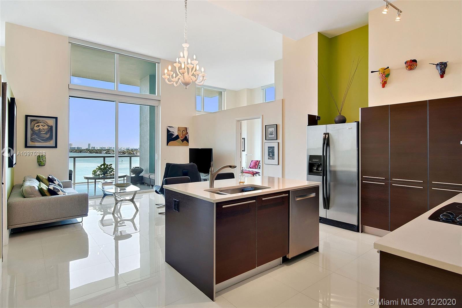 Gorgeous shimmering unobstructed and truly outstanding direct bay views from this rare coveted loft style residence with soaring 13 FT ceilings at Quantum on the Bay. Watch beautiful sunrises and sailboats while you sip your morning coffee on your oversized balcony. Spacious open floor plan with 2 bedrooms plus den, guest bathroom, porcelain tile flooring, oversized impact glass windows with electric shades, custom built in cabinetry and walk-in closets. Parking convenient to direct floor level. Full service secure building with fully equipped fitness center, billiard room, 2 pools and cyber library. This unit overlooks the 8 acre Margaret Pace Park on the bay in Edgewater. Fabulous location, walk to many shops and restaurants nearby including Publix, museums and more.