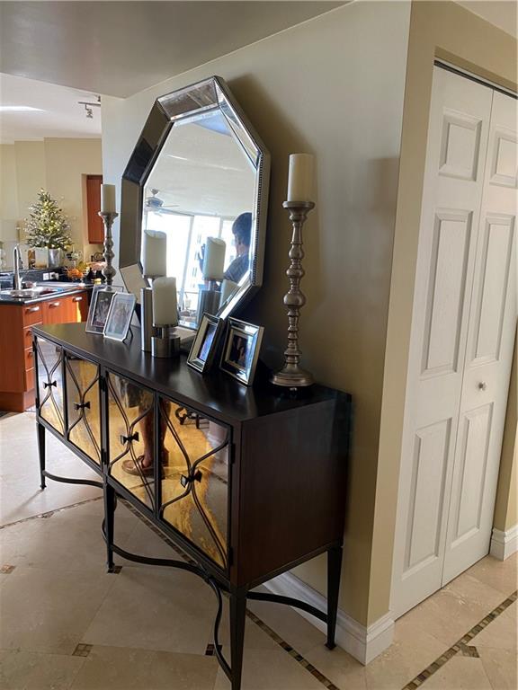 Beautiful bright SE corner 2 bedroom / 2 bath + DEN. Must see, one of the nicest units in the building. Custom plan with many designer touches: light stone floors with glass inlay, raised decorative ceilings, Swarovski lighting, custom closets, granite counters, bonus large pantry/ linen closet. Wrap around balcony with stunning ocean and intracoastal views. Private ocean front beach club with pool, whirlpool spa, poolside grill, and beach access. 2nd pool and spa between towers, fitness facility, billiard room, desk attendant, valet, 2 prime garage spaces. Great Location. Bayview School district. Pets welcome